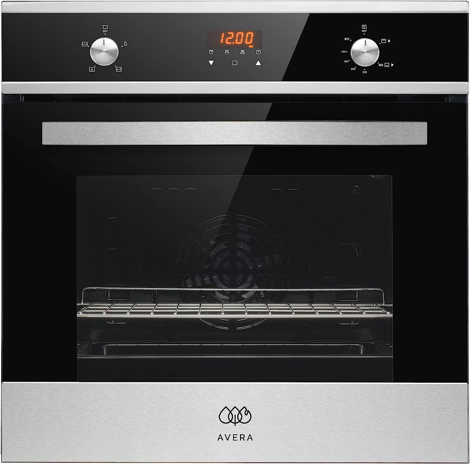 AVERA Horno de GAS NATURAL Empotrable de Conveccion, Acero Inoxidable, 5 Modos Cocción, Control Tactiles, Temporizador, Perillas para cambio de temperatura, Accesorios Incluidos, Modelo HE01NAT