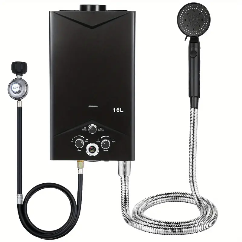 Calentador de agua instantáneo 4.21GPM 16L, calentador de agua a gas portátil para exteriores, calentador de agua de temperatura constante rápida, calentador de agua portátil con pantalla digital, rociador 23.23 "x13.39"