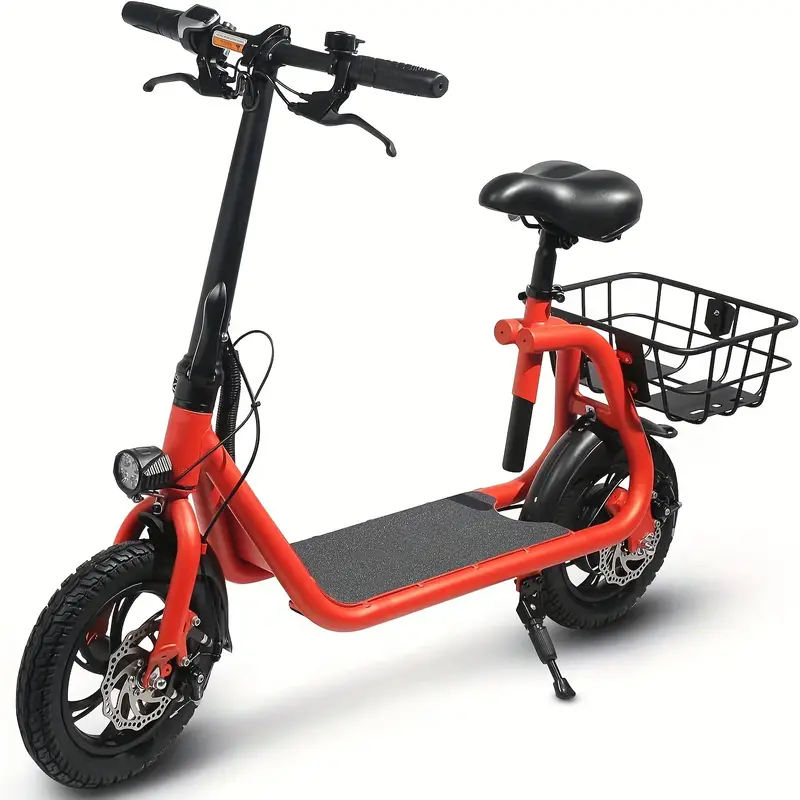 Scooter eléctrico de 450W con asiento ajustable, poste plegable, scooter eléctrico deportivo de 36V 8Ah, velocidad máxima 15.5Mph, rojo