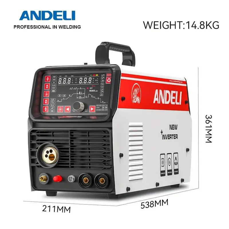 Máquina de corte por plasma multiproceso ANDELI MCT-520LED 110V/220V, sin alta frecuencia, corte por plasma, MIG TIG CUT&MMA, soldadura en frío y soldadura por arco sumergido, pantalla LED, máquina de soldadura MIG 5 en 1.