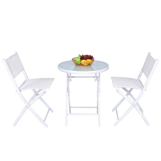 Set 3 Piezas de Bistró Plegable Set Conversación de Jardín con Mesa y 2 Sillas Juego Muebles para Patio Interior Exterior Blanco
