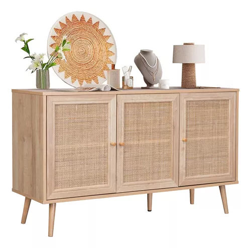 Credenza Bufetera Top Living Aparador 3 Puertas De Ratán Color Marrón