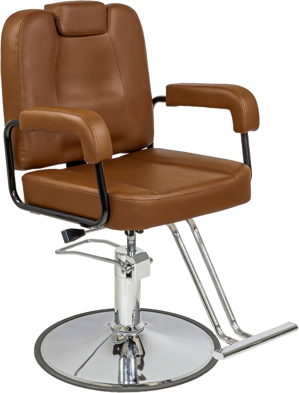 RACK & PACK Sillon Barberia Estetica Salon de Belleza Silla Premium de Peluqueria Sistema Hidráulico Ajuste de Altura Respaldo Reclinable de 45° Soporta 150 Kg Asiento Giratorio 360° Color Cafe