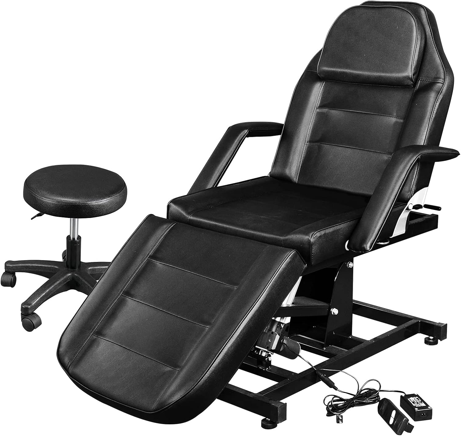 OmySalon Silla eléctrica de altura ajustable para tatuajes, cama para esteticista, silla de cama facial multiusos para peluquero, spa, salón de belleza con equipo de taburete hidráulico, control remoto, color blanco