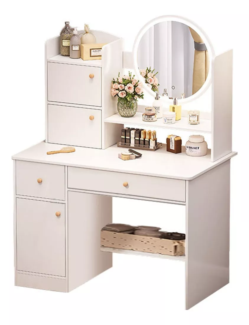 Tocador Multifuncional Con Espejo Led Con Cajas (sólo Mesa)