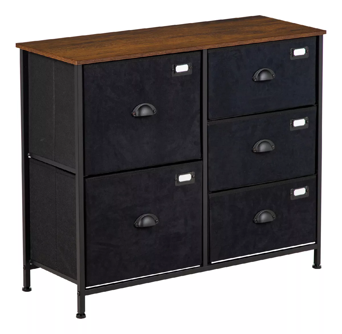 Comoda Cajonera 5 Cajones Mueble Organizador De Tela Madera Acabado Mate Color Negro Kingshouse