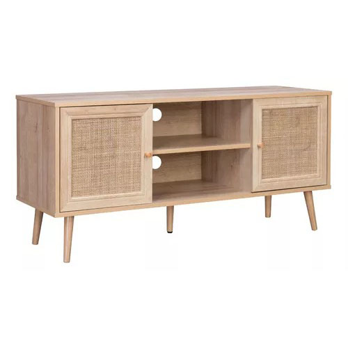 Mueble Para Tv Top Living Con Estantes Y Puertas En Ratán Color Beige