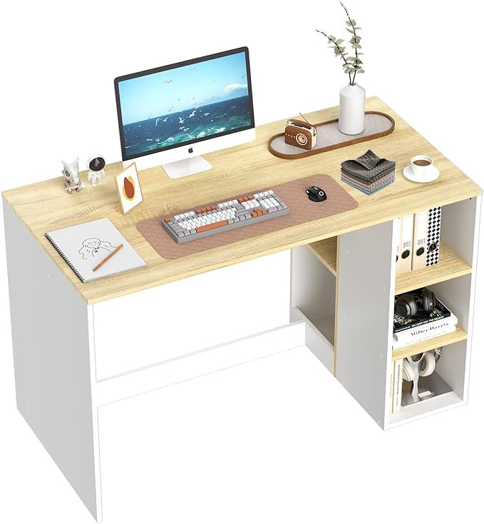 FurnitureR Escritorio para Computadora de Oficina con Almacenamiento Escritorio de Trabajo y Estudio con 5 Estantes Mesa Portátil para Estudiantes Escritorio de Escritura Moderno Haya y Blanco