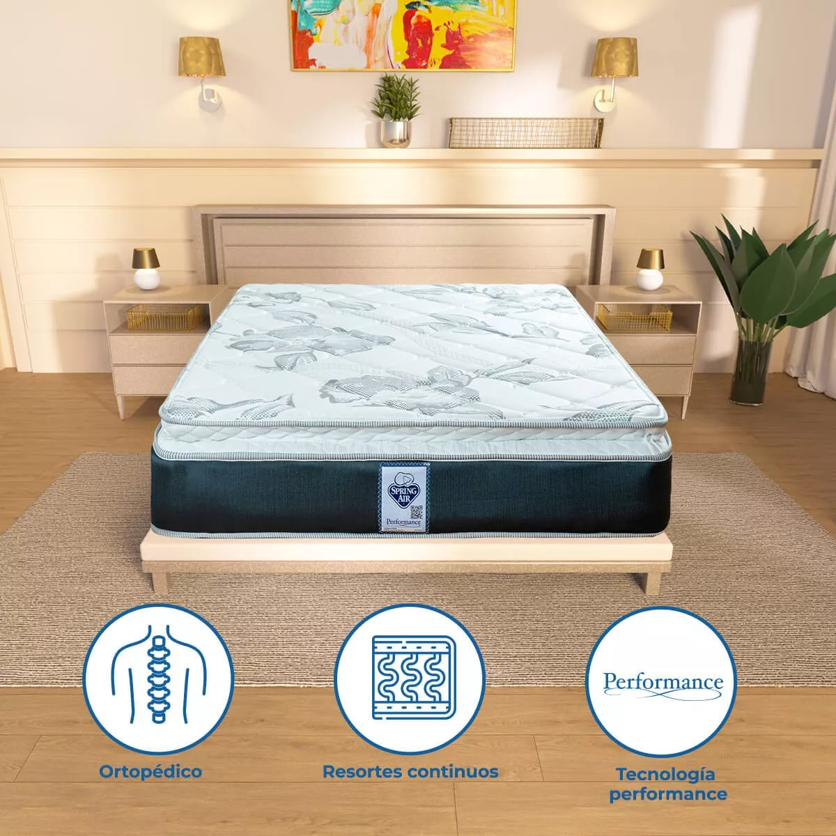 Colchón Matrimonial Spring Air Smith Color Blanco/Azul petróleo/Gris