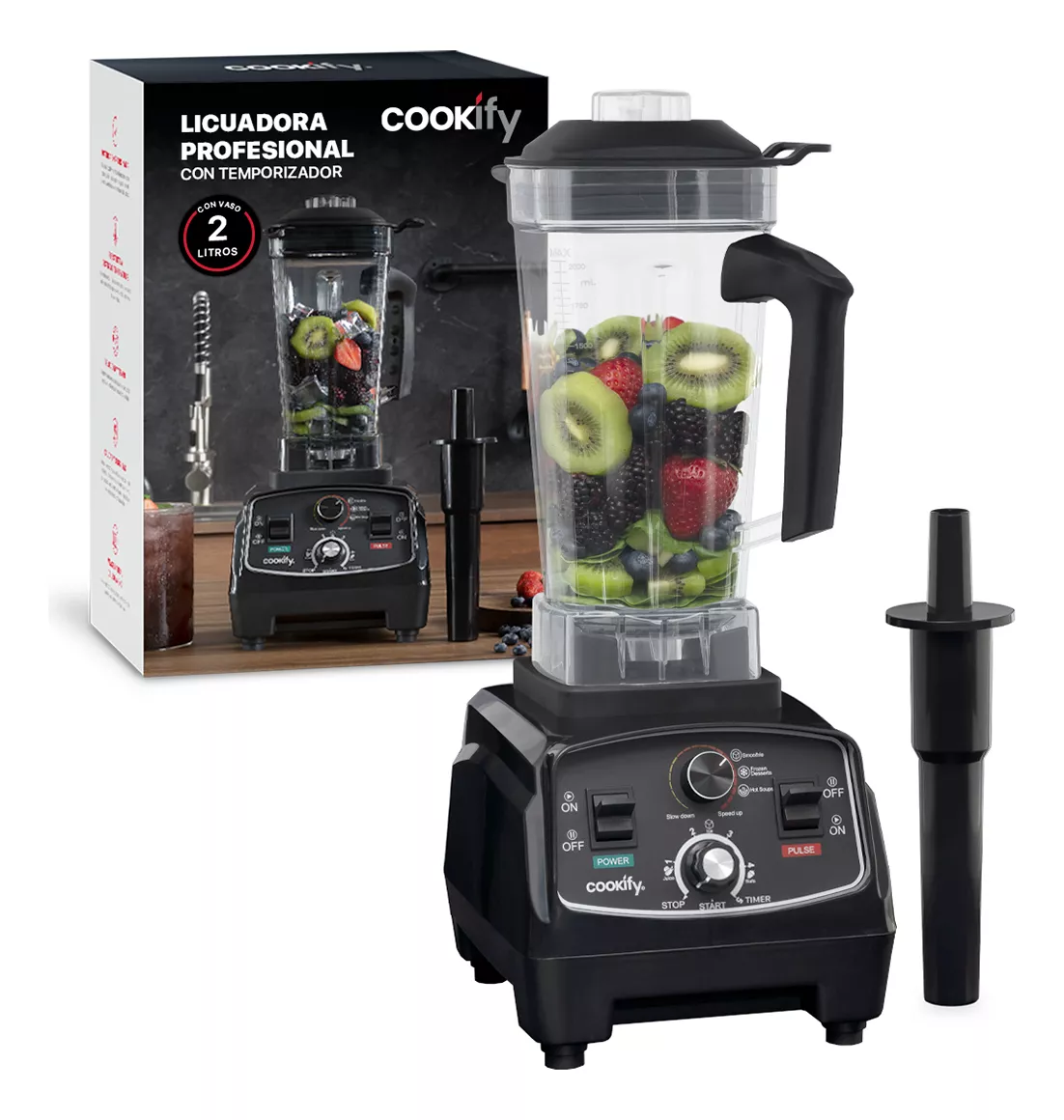 Cookify PB004 Licuadora Profesional De Alto Poder Uso Rudo 2 Lts Tamper 1800w Color Negro