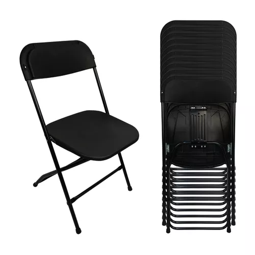 Sillas Plegables De Plástico Reforzadas Negras Set De 10 Pzs Color Negro Liso