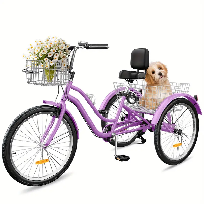 Triciclo para Adultos de 26 Pulgadas y 7 Velocidades, Bicicleta de Paseo de 3 Ruedas con Paso Bajo y Asiento Grande, Respaldo, Cestas Delanteras y Traseras para Personas Mayores, Mujeres, Hombres
