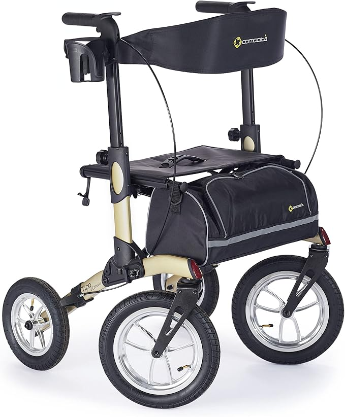 Comodità Tipo Caminante todo terreno, con ruedas para exteriores con asiento extra ancho y frenos para adultos y personas mayores, fácil de plegar, 4 ruedas, champán metálico