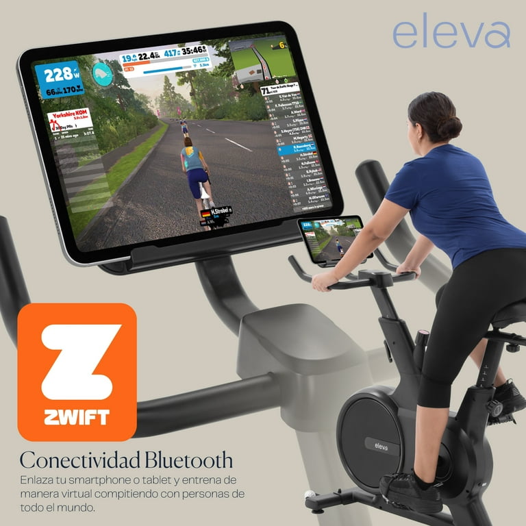 • La bicicleta ELEVA está diseñada para la comodidad y versatilidad, e incluye un práctico soporte para ablet. Esto te permite disfrutar de entretenimiento o seguir tus programas de entrenamiento favoritos mientras te ejercitas, manteniendo tu ablet al alcance de la vista de manera segura y accesible durante tus sesiones de spinning.