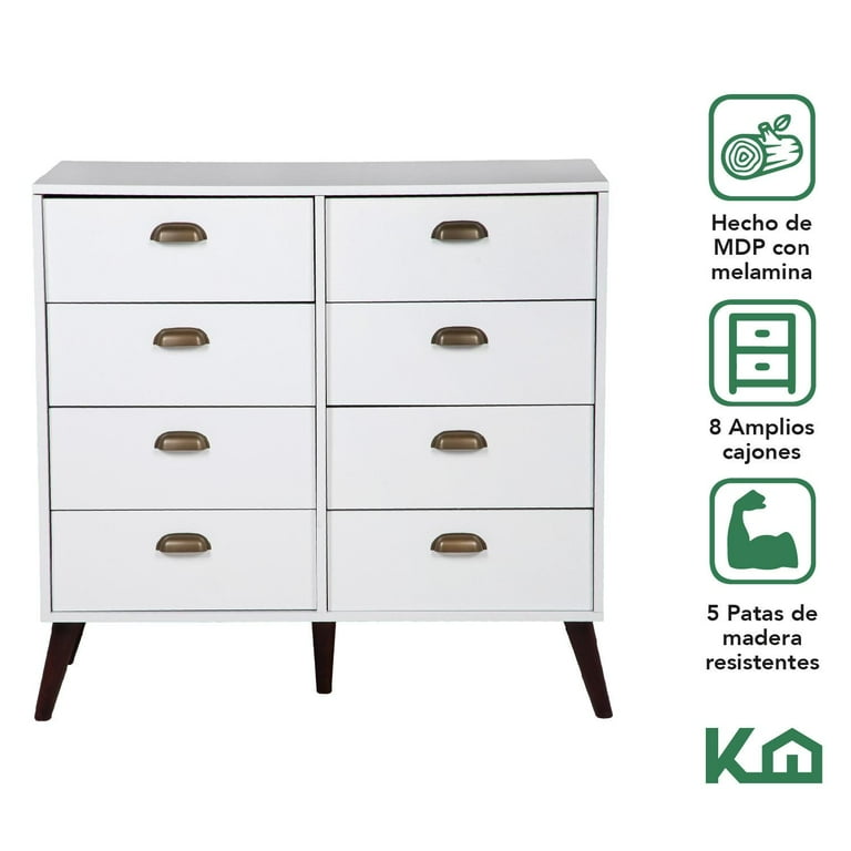 - Buro Cajonera Cómoda Mueble Multiusos 8 Cajones Recamara blanco