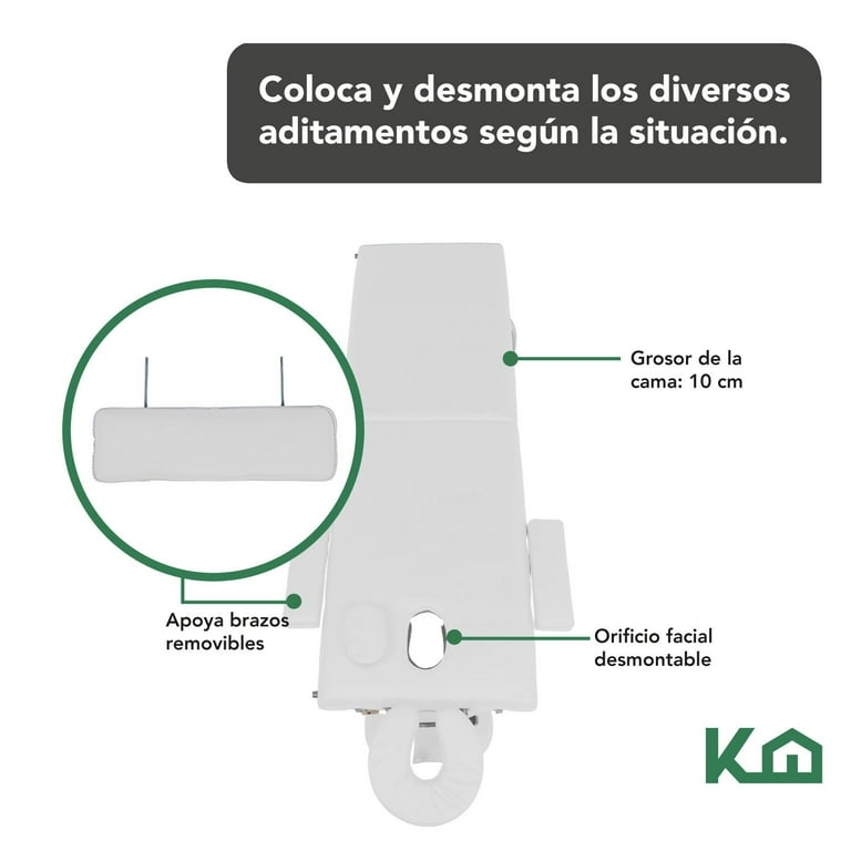 • Tu compra incluye 1 cama de masaje portátil plegable 1 par de brazos desmontables 1 apoya brazos colgante 1 orificio facial desmontable 1 base para reposacabezas 1 reposacabeza acolchado y 1 bolsa de transporte