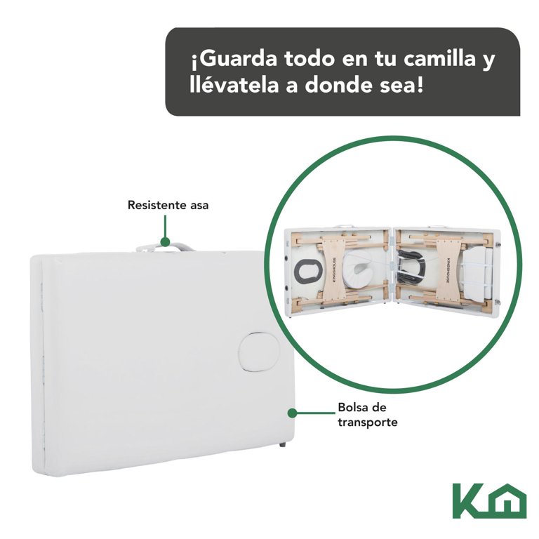 Cama Masaje KingsHouse Plegable Camilla 2 Secciones Blanca Descripción: Esta cama de masaje portátil Kingshouse está diseñada para brindar una atención profesional, ya sea para masajes terapéuticos o de relajación y para la comodidad del paciente.