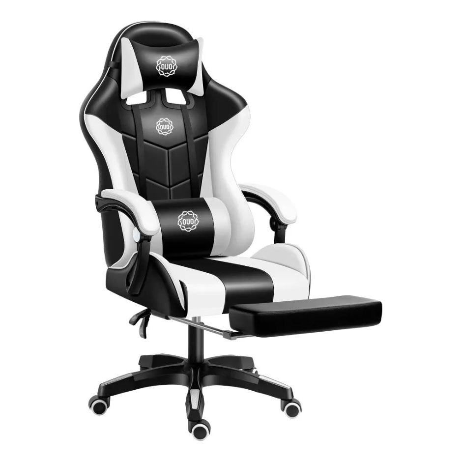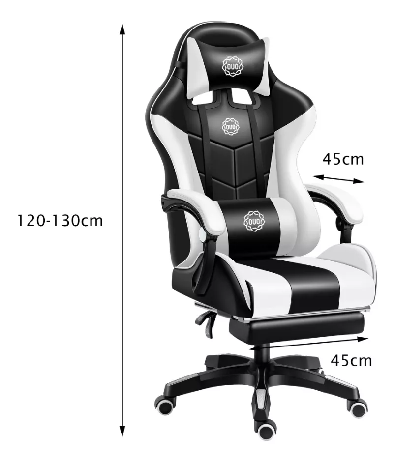 Nuestra silla gamer está equipada con reposacabezas ajustable y almohada lumbar de masaje. Cuando pasa largas horas en la oficina, frente a la computadora o jugando, reduce al máximo su presión y fatiga. La silla para juegos de carreras viene con un reposapiés extensible y un diseño de reposabrazos acolchados que le brindan total comodidad y relajación.