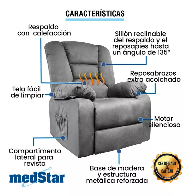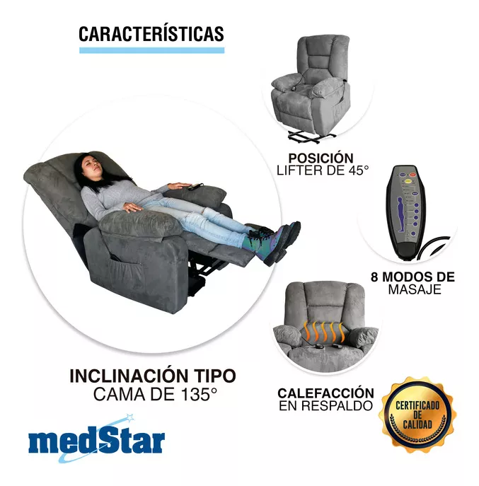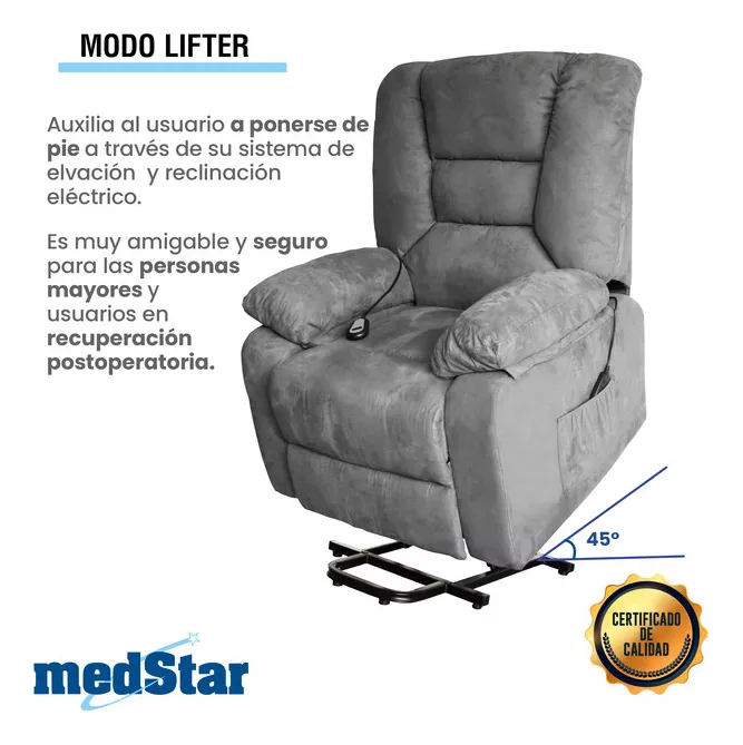 Ideal para auxiliar al usuario a ponerse de pie a través de su sistema de elevación y reclinación