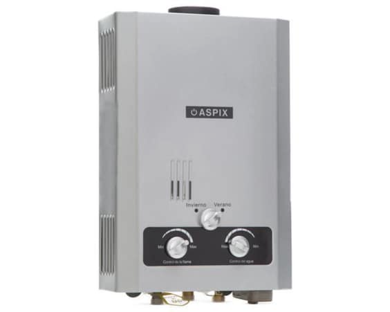Tiene una capacidad de 6 litros y de calentamiento de 4.5 l por minuto, funciona con gas LP y es apto para 1.5 servicios. Su diseño compacto es de encendido electrónico, cuenta con función verano-invierno y temperatura ajustable.