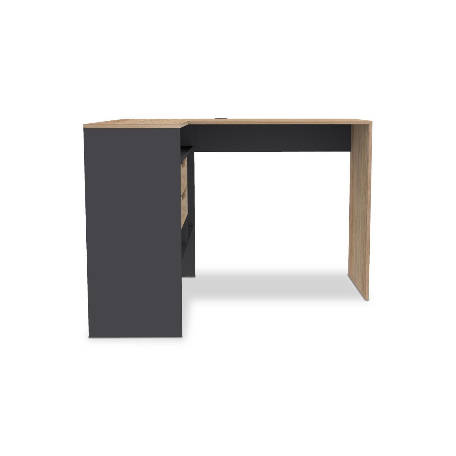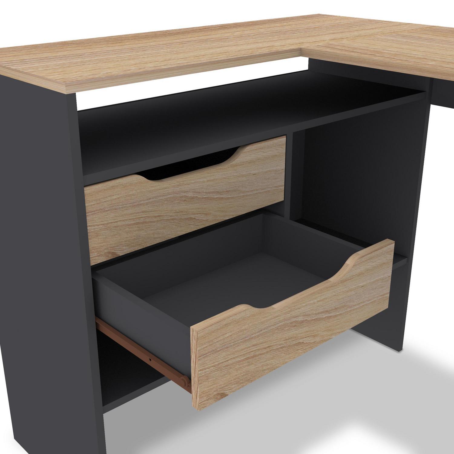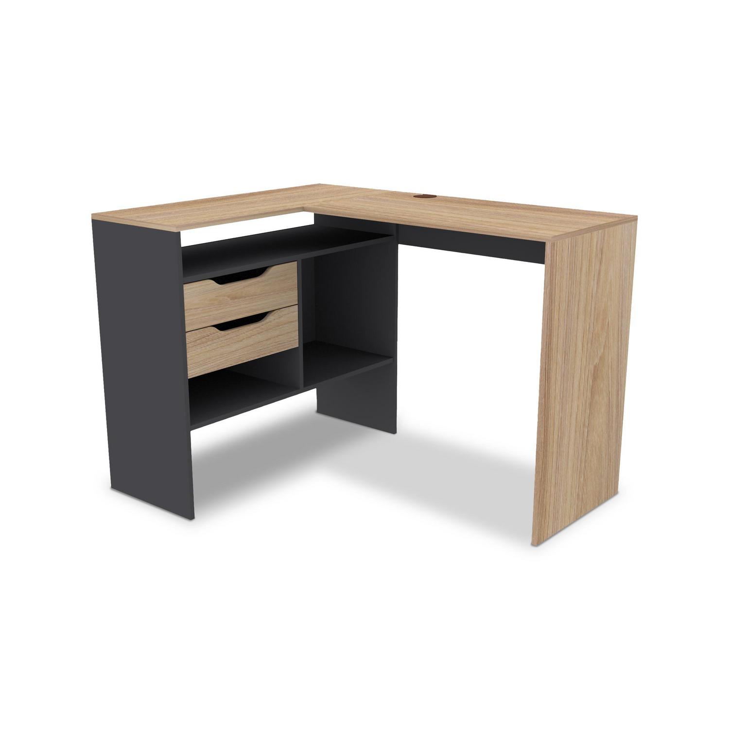 El Escritorio Milán cuenta con dos cajones para guardar tus documentos y objetos personales, y su diseño en forma de L te permite aprovechar al máximo el espacio. Además, su superficie de melamina es fácil de limpiar y resistente a los arañazos. Con una garantía de 6 meses, este escritorio te ofrece la seguridad de una compra inteligente.