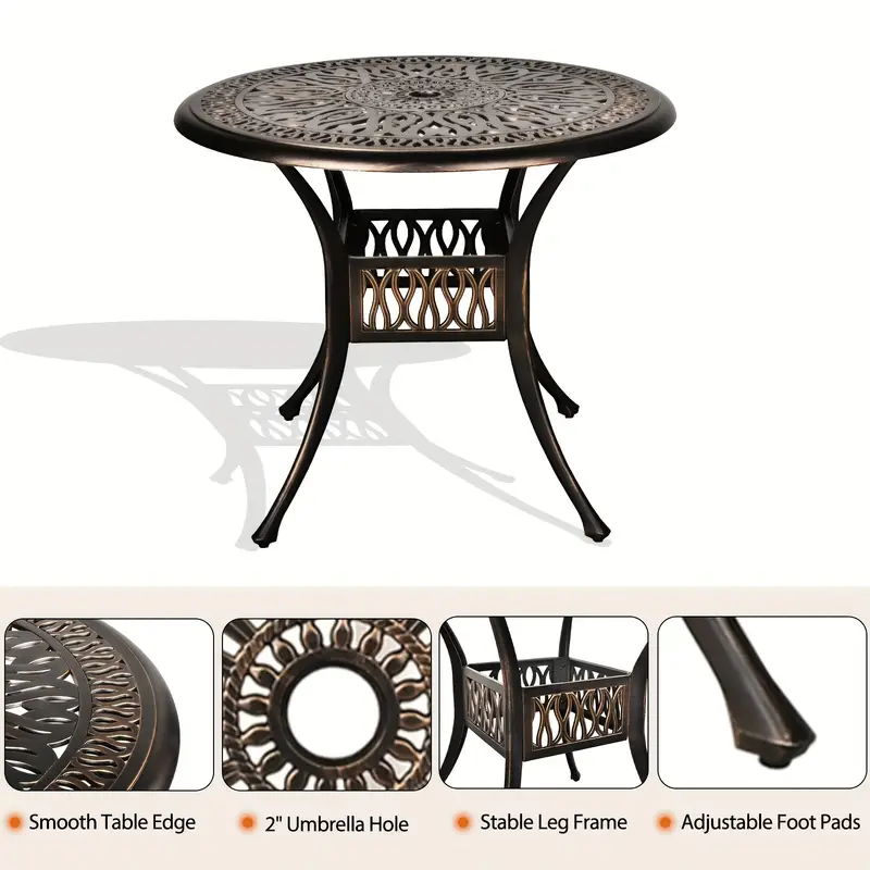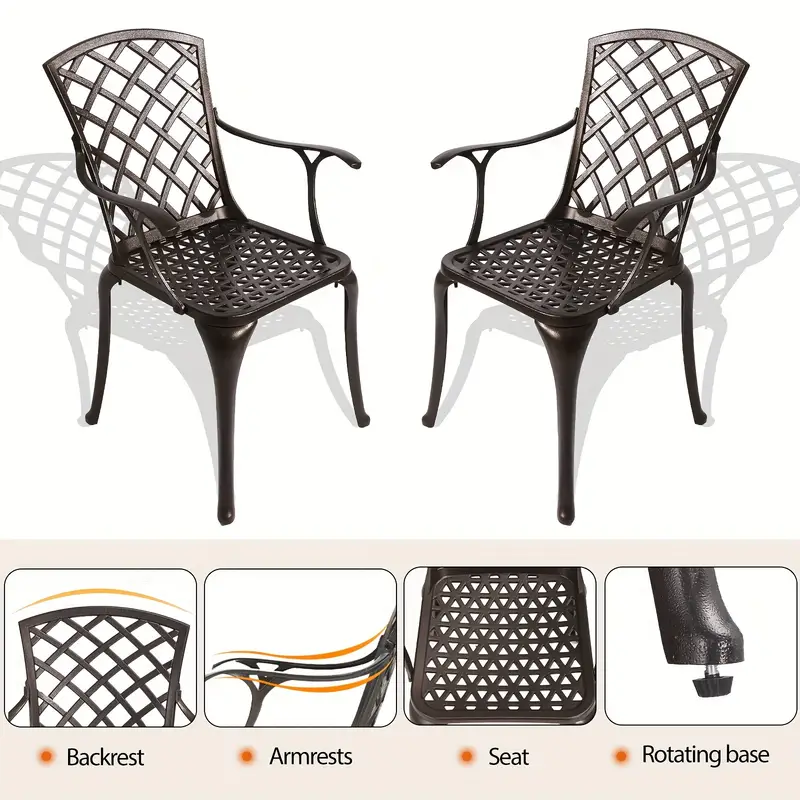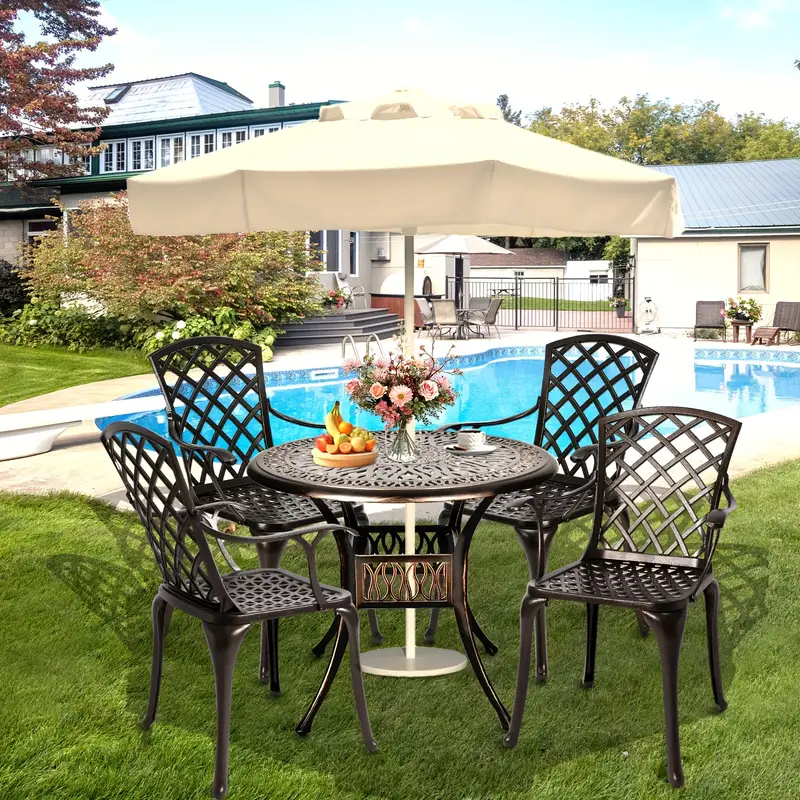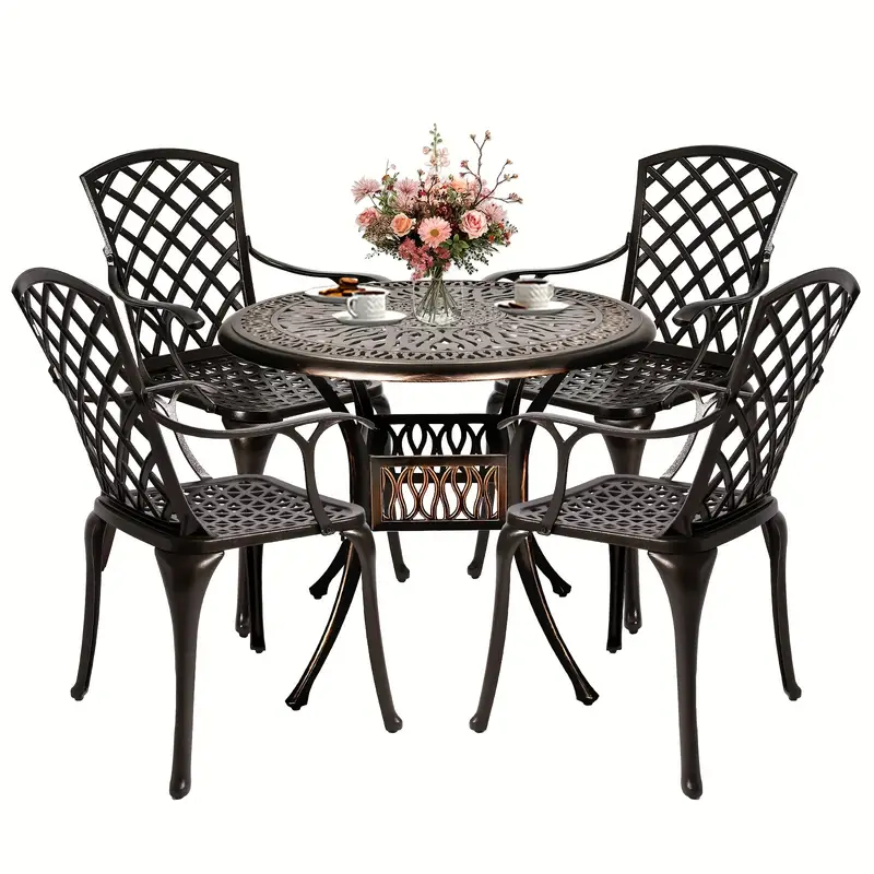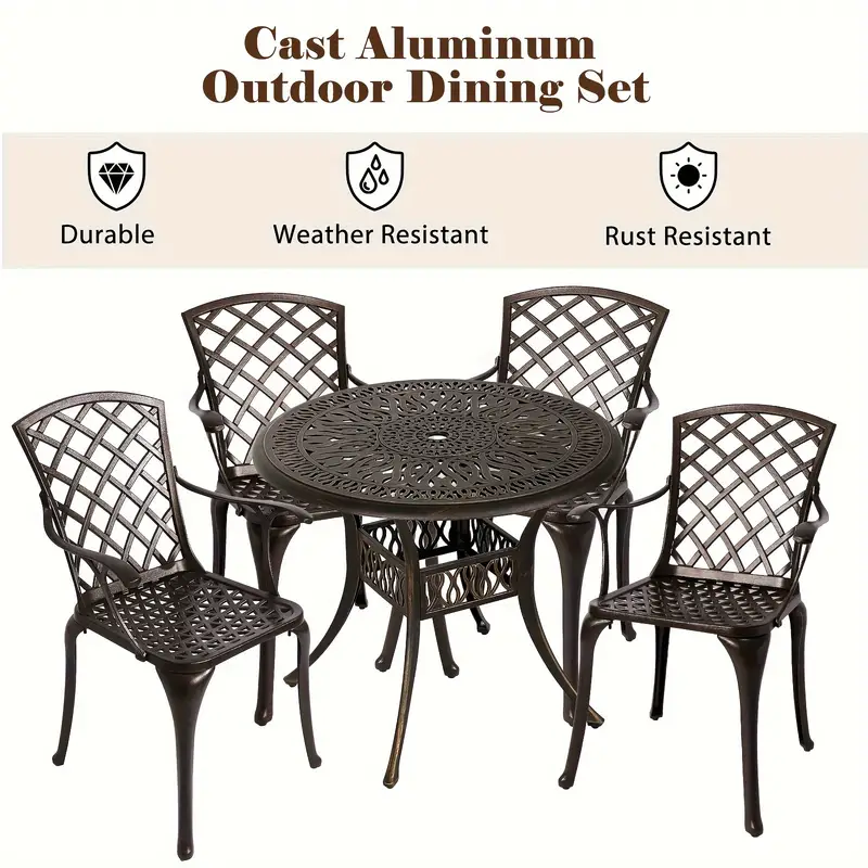 Juego de comedor para patio al aire libre de 5 piezas, juego de muebles de patio de aluminio fundido, juego de conversación para patio trasero, jardín, terraza, piscina