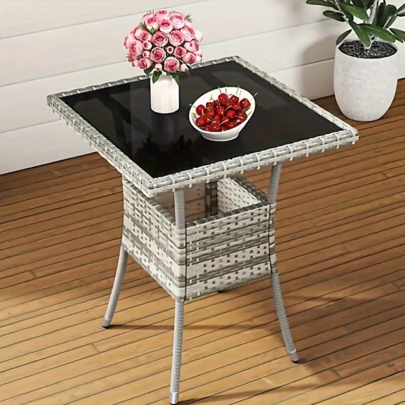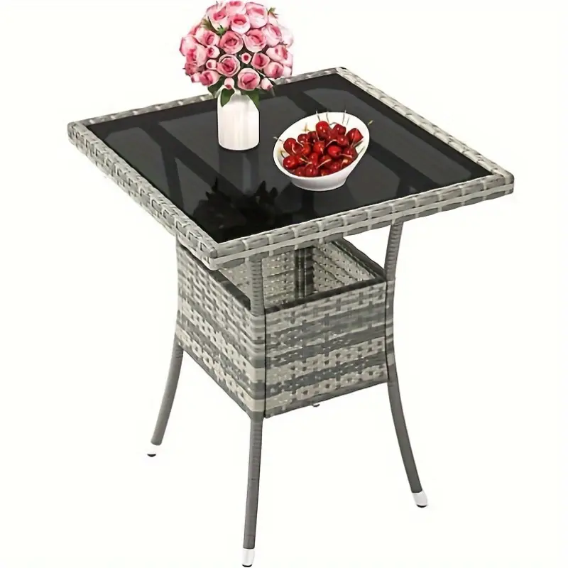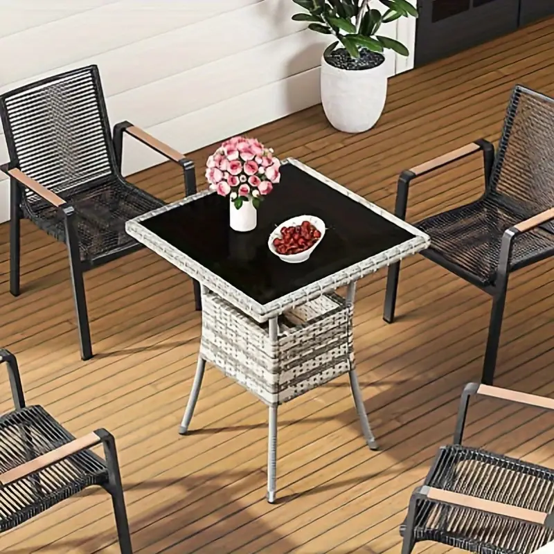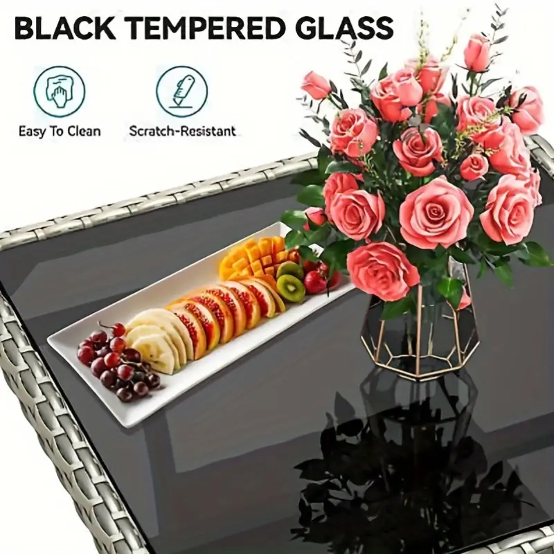 [Mesa de wika comedor para patio al aire libre] - Superficie de mesa de vidrio fácil de limpiar: Mantenga sin esfuerzo la apariencia impecable de la mesa de bar de mimbre para patio YITAHOME con una superficie de mesa de vidrio fácil de limpiar, lo que garantiza una limpieza duradera.