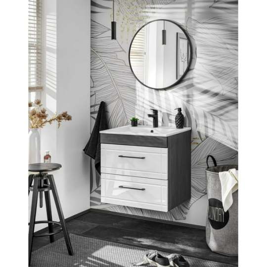 • El Mueble de Baño Caracas: Elegancia y Organización en Tu Cuarto de Baño. Agrega un toque de sofisticación y mantén tus productos de baño al alcance con este versátil mueble de alta calidad. Gabinete de tablero laminado de 16 mm, frentes de MDF 16mm cubiertos de membrana de PVC termoformado, 2 cajones con correderas de cierre lento metálicas , jaladeras metálicas Dimensiones del mueble: 60 cm de ancho x 57 cm de alto x 45,5 cm de profundidad