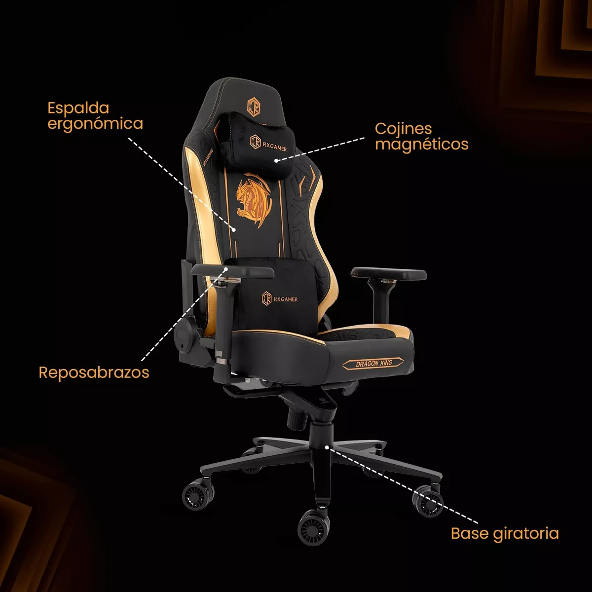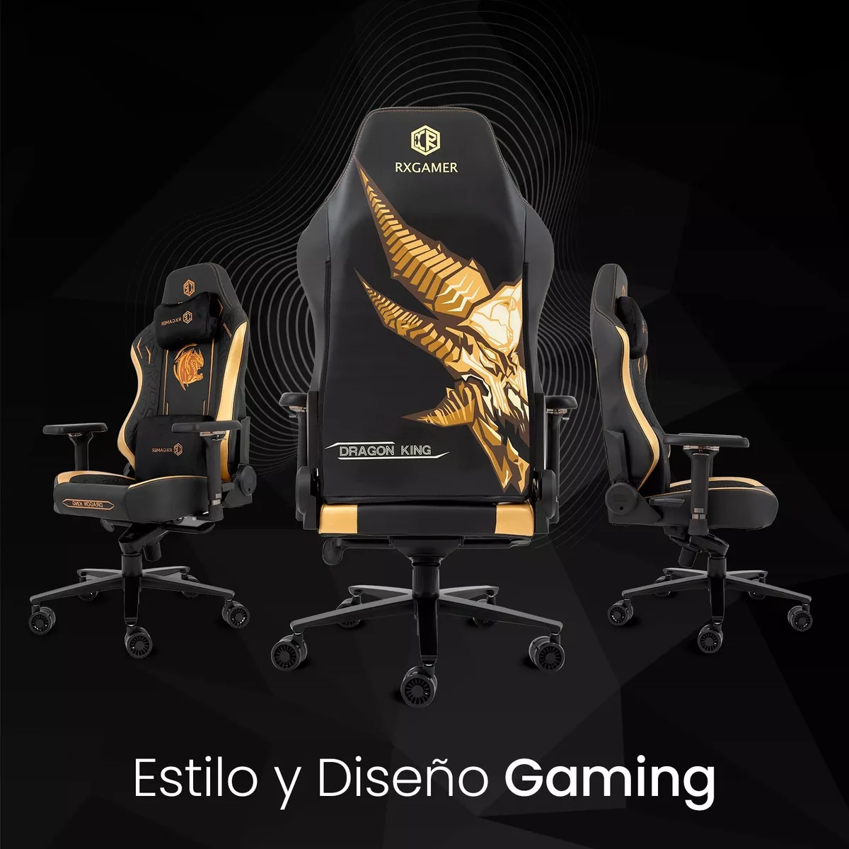 Variedad de colores: La silla RxGamer está disponible en tres emocionantes opciones de colores: "Negro/Blanco" para un aspecto clásico y elegante, "Negro/Dorado" para los amantes del espacio y la tecnología, y "Rojo/Dorado" para aquellos que desean un toque audaz y enérgico en su espacio de juego.