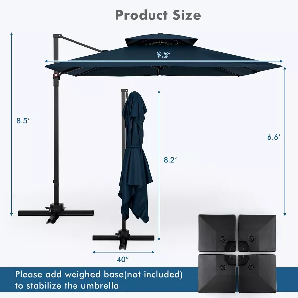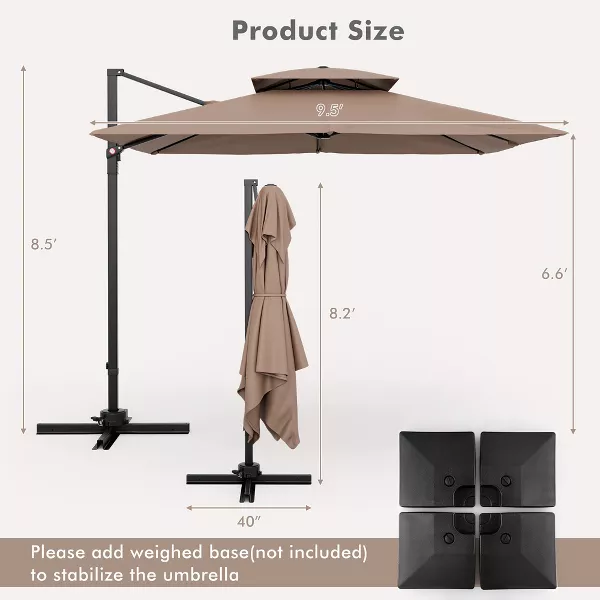 Tangkula Patio Paraguas compensado voladizo cuadrado de 9.5 pies con doble ventilación 360 ° resistente