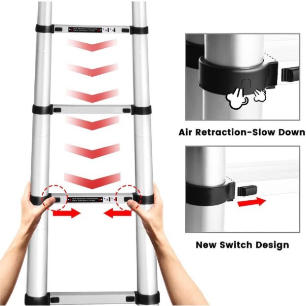 √ Convenient: This ladder can be easily extended and then retracted with one click, retracting to 2.9 feet! The innovative air brake system helps prevent pinching fingers!