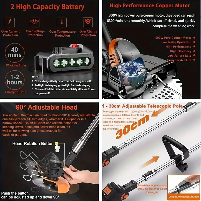 Múltiples Funciones - El Cortacésped Inalámbrico Ampliamente Utilizado Para Recortadora de Césped/bordeadora de césped/cortacésped/desbrozadora, Equipado Con 2 de 24V Batería Duradera y Potente, Motor de Cobre Puro de 800W de Alta Potencia Proporciona Excelente Tiempo de Funcionamiento - Velocidad Sin Carga de 12000RMP, Proporciona un Rendimiento Máximo al Cortar a Través de las Malezas, Césped y Crecimiento Excesivo Más Difíciles, Realiza el Trabajo Rápidamente