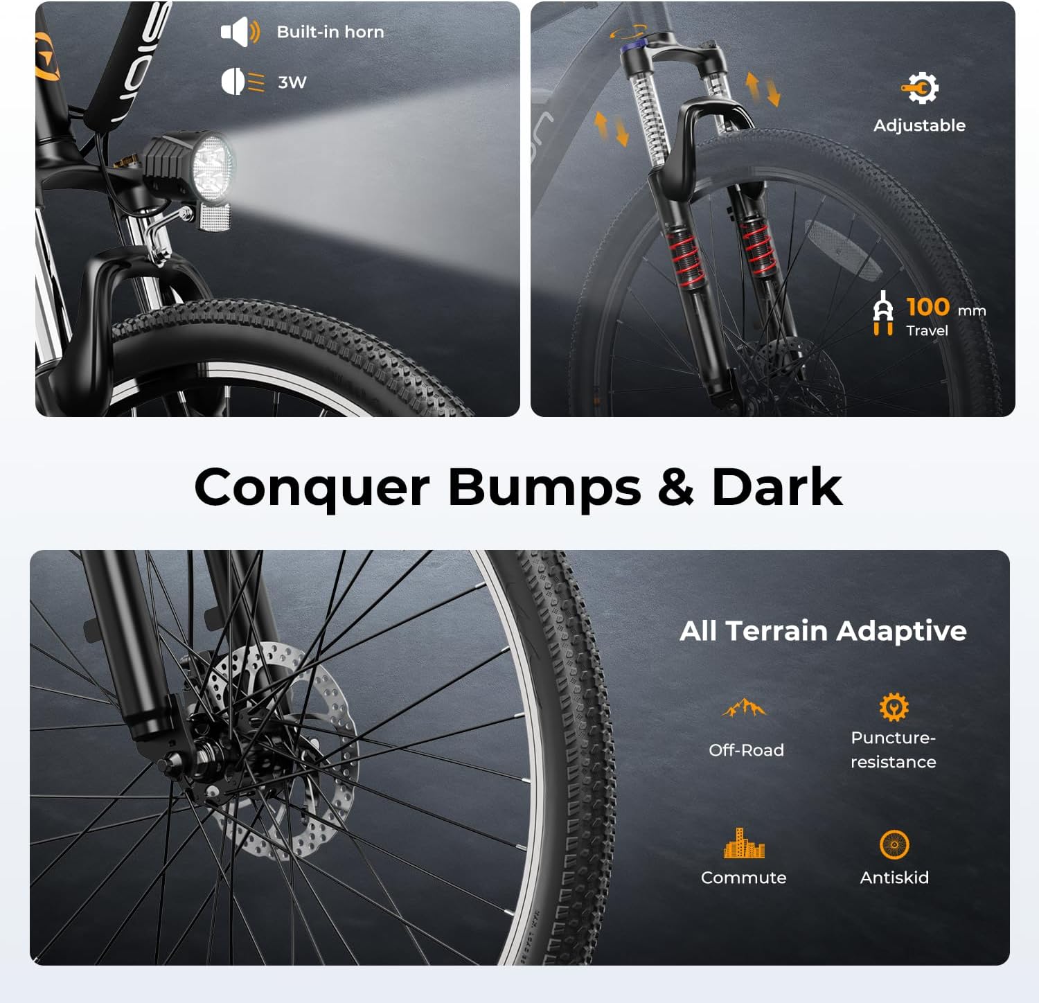 - Riding Comfortably and Handily: The 26" puncture resistant tires are for greater durability. A high-strength front fork suspension, 7-speed gears, dual lights, LCD display, front and rear mechanical disc brakes can bring your riding more comforts, make your e-bike adapted to complex terrains and keep you safe