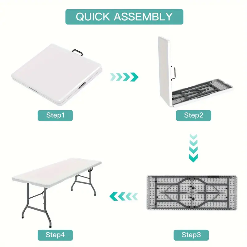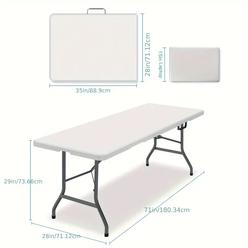 Mesa plegable de plástico de 6 pies, mesa de comedor portátil para interiores o exteriores de 4 pies