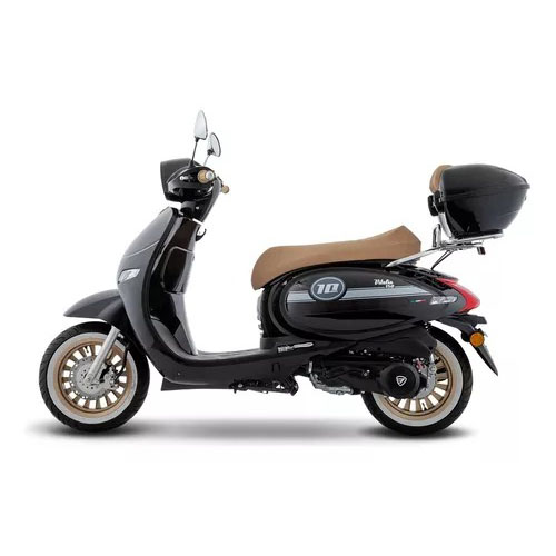 Esta motoneta alcanza una velocidad máxima de hasta 86 kilómetros por hora, cuenta con un tanque con capacidad de 5 litros y soporta un peso de hasta 150 kilos.