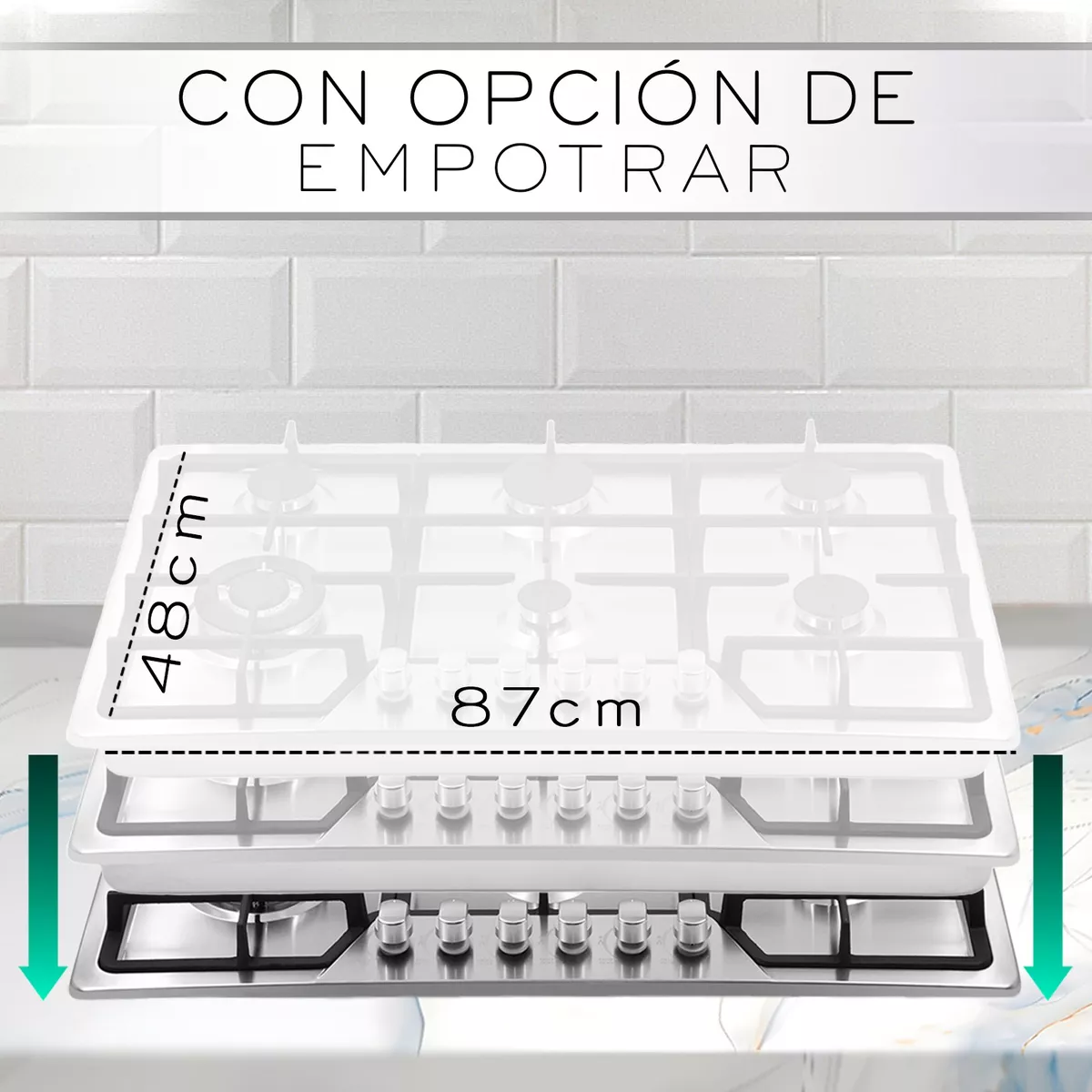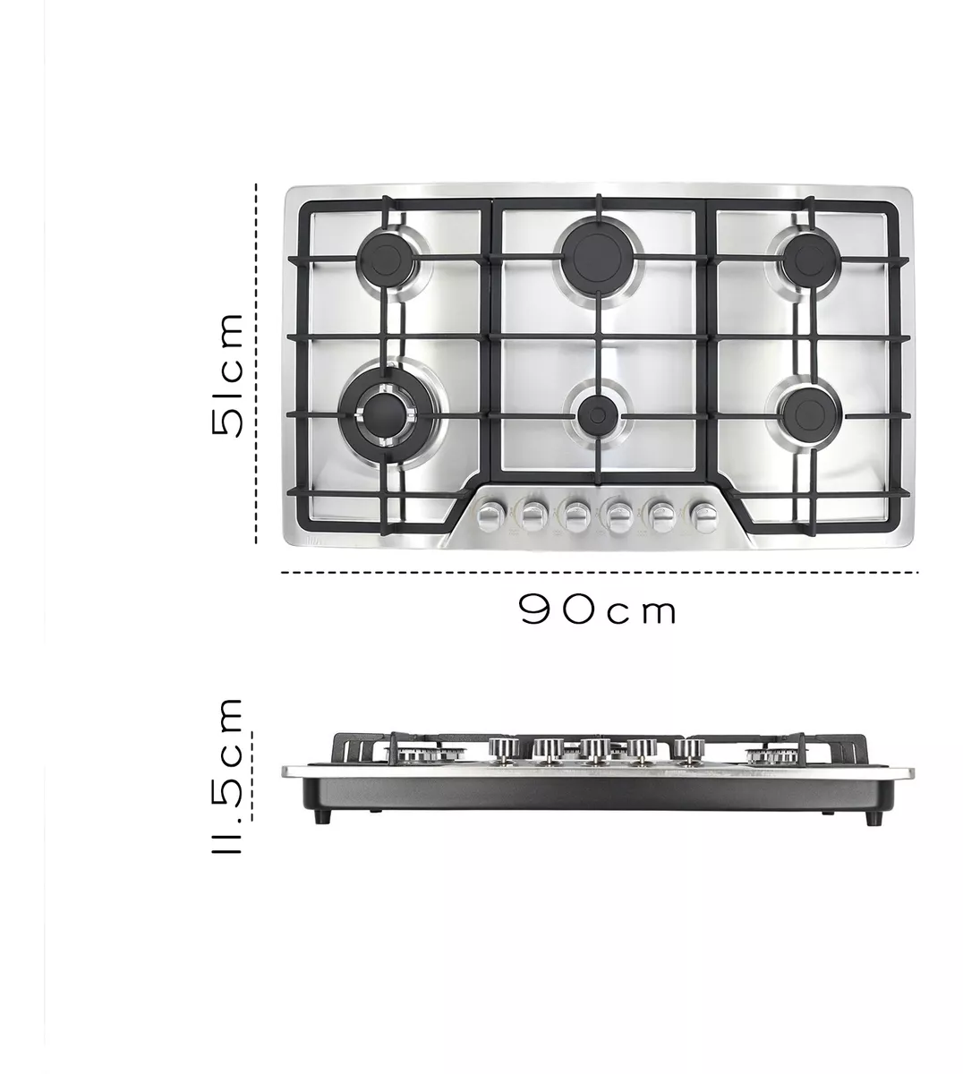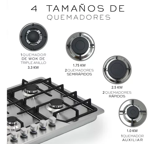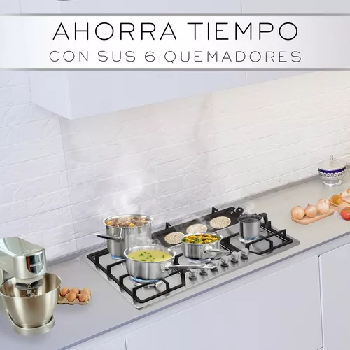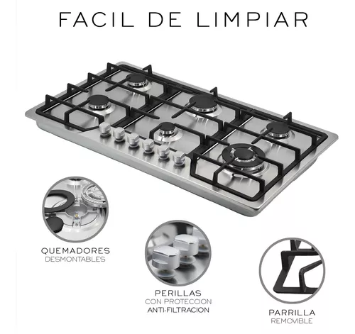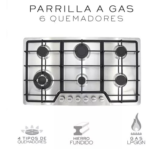 *6 quemadores de hierro desmontables.