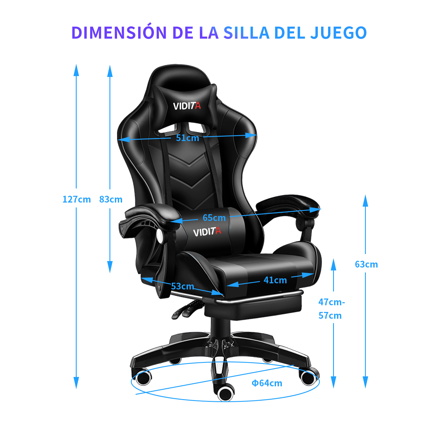 [Función básica] -360° de giro, elevación y bajada, respaldo reclinable de 90° a 135°. Ya sea que estés jugando, trabajando o tomando una siesta, un respaldo ajustable en ángulo te ayudará a ajustar la posición de sentado durante todo el curso de tu experiencia de uso.puedes ajustar la altura de las sillas para satisfacer tus necesidades y tiene una base giratoria de 360° y con 5 ruedas resistentes al desgaste con rodamiento suave que protege el suelo de rayaduras.