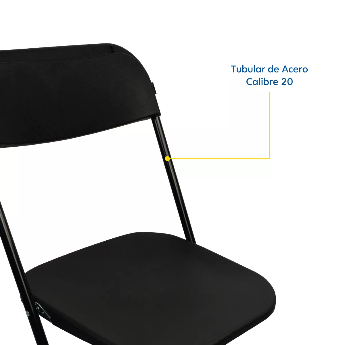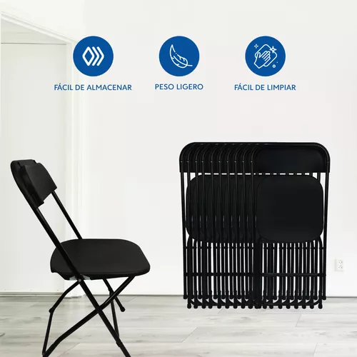 Plegables y Compactas: Optimiza tu espacio con el diseño compacto de estas sillas, permitiéndote almacenarlas fácilmente cuando no estén en uso. Ideal para eventos y reuniones donde se busca una solución práctica y eficiente.