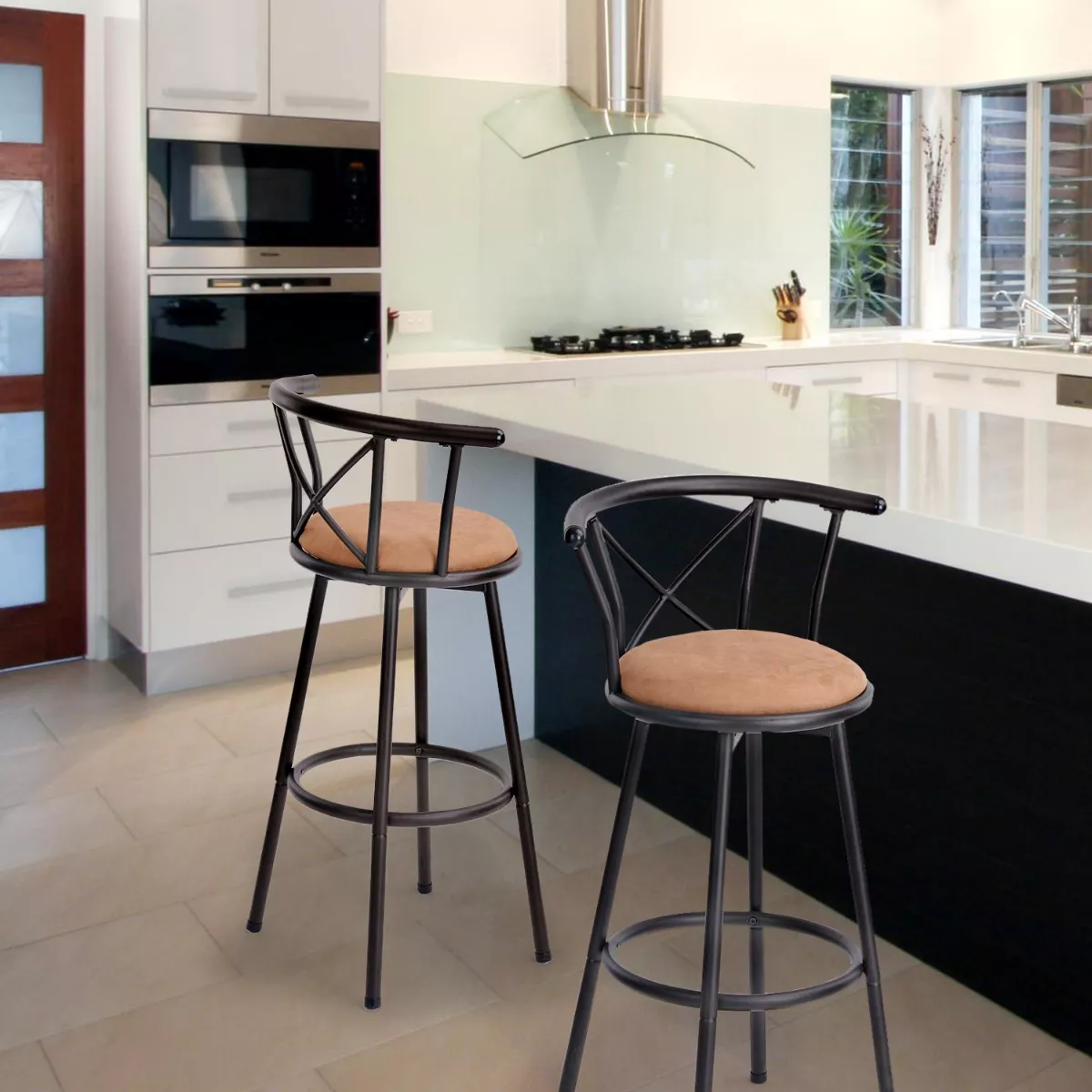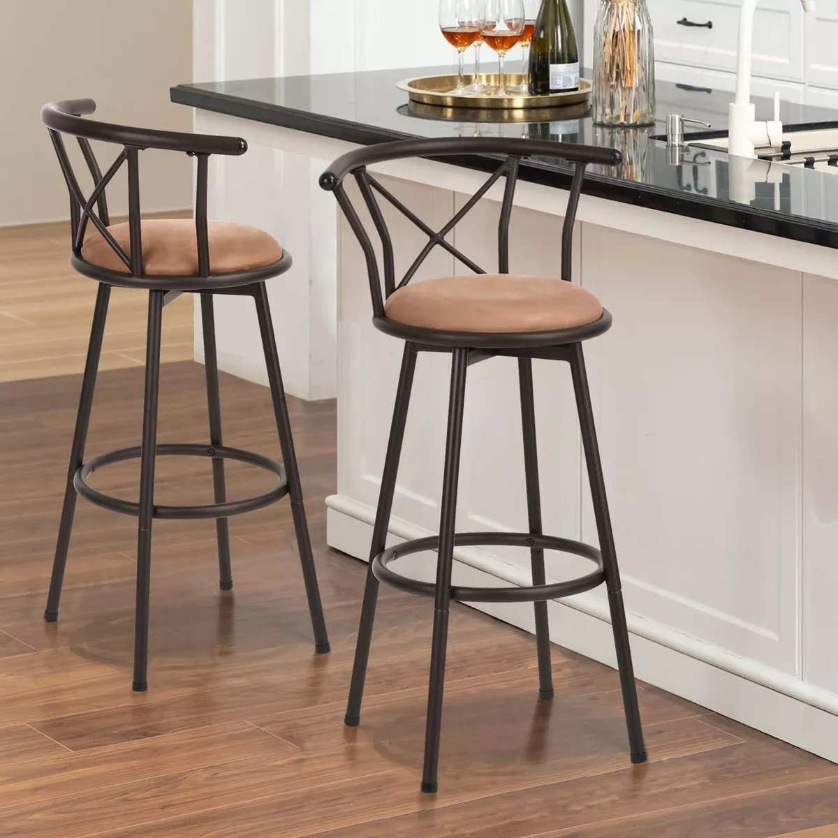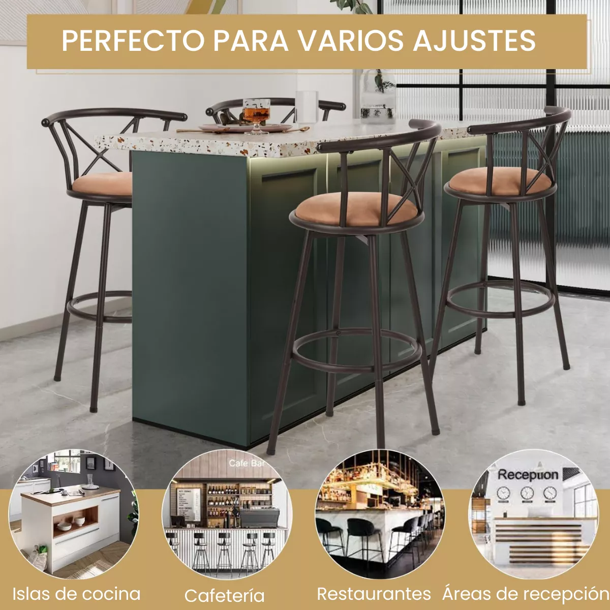 Taburete de bar giratorio de altura de mostrador: con una altura de asiento de 29 pulgadas, este taburete de bar es perfecto para su café, refrigerio o desayuno en bistrós y cocinas. El diseño giratorio de 360 grados le brinda flexibilidad para moverse, por lo que puede comunicarse con otras personas en cualquier dirección y es fácil de usar etc.