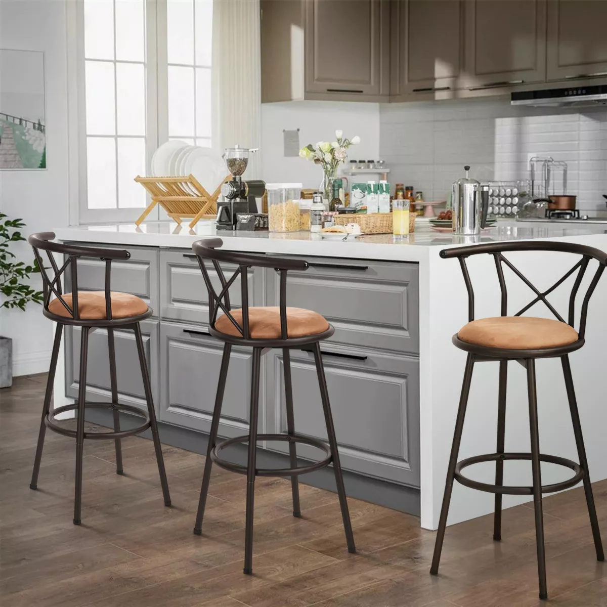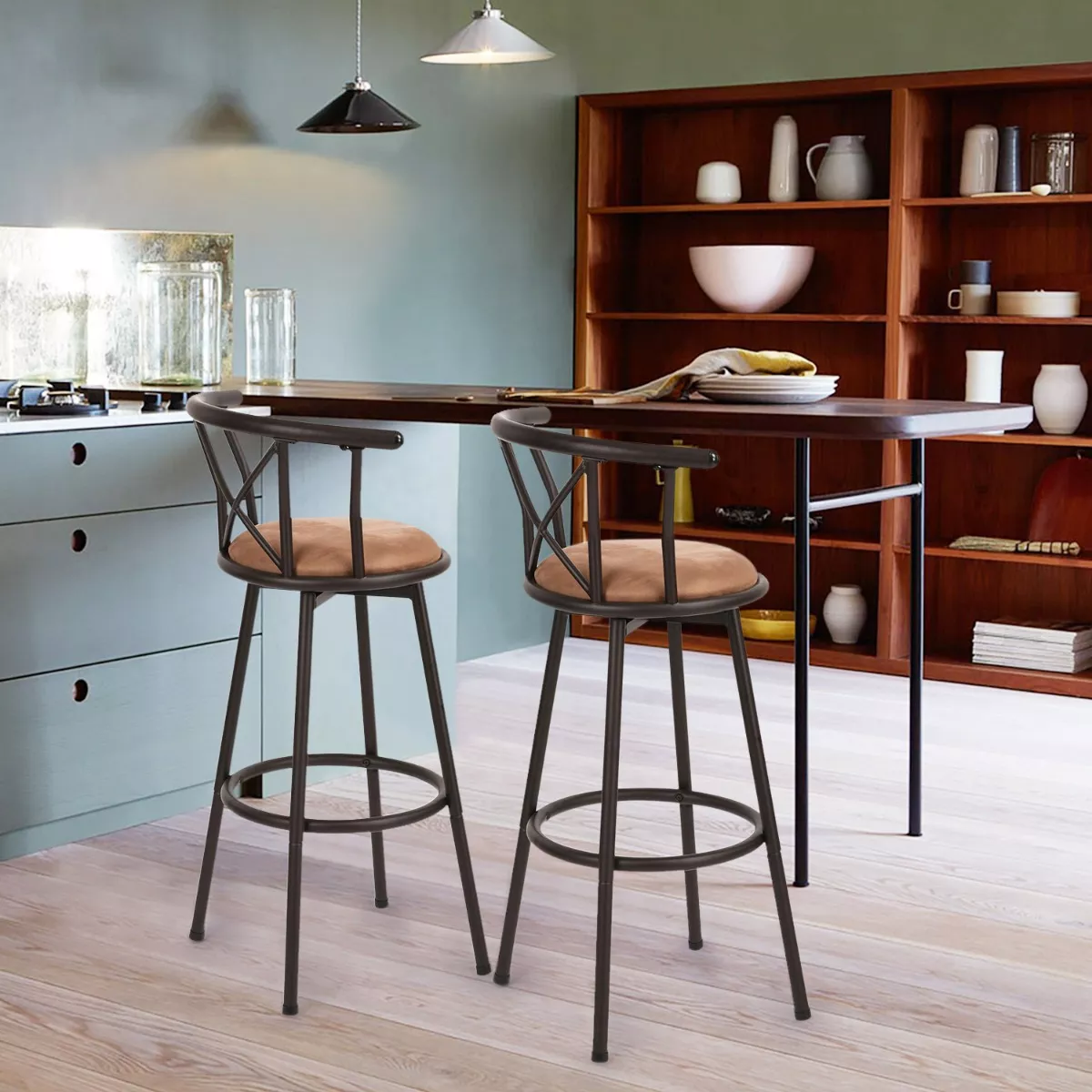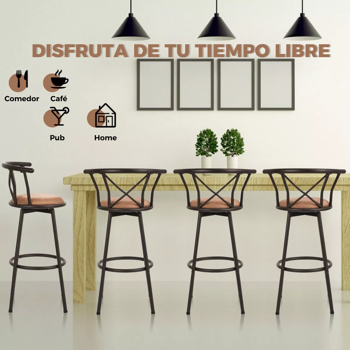 Apariencia rústica elegante: caracterizado por colores clásicos y líneas limpias, este taburete de bar giratorio está lleno de encanto rústico. Con un aspecto elegante, este sofisticado taburete de bar es adecuado no solo para bistrós y cafeterías, sino también para restaurantes y tu cocina.