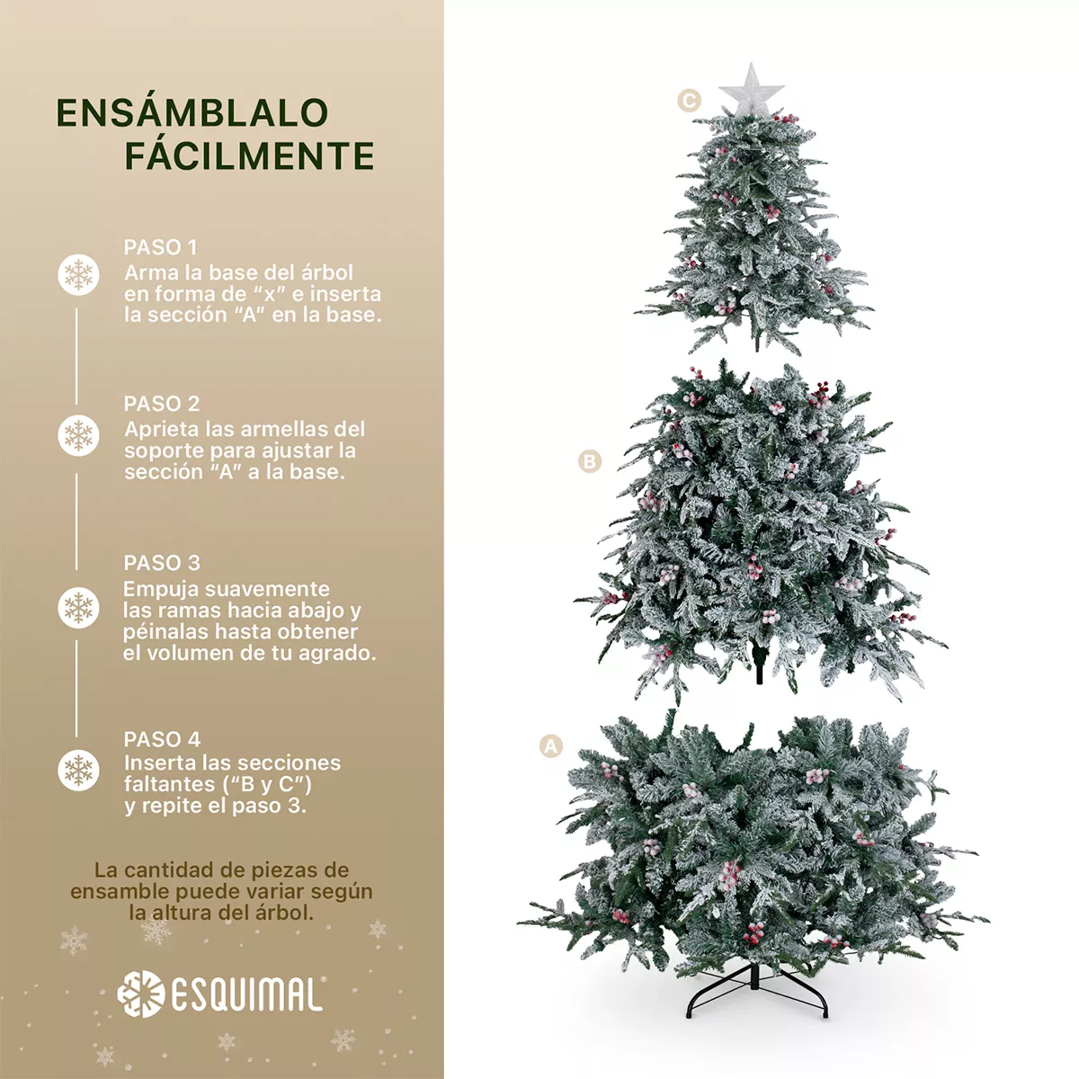 ¡El Árbol de Navidad Nevado con Luces LED ESTRELLA + BAYAS de 1.8 m de alto es parte de nuestra colección navideña Esquimal! Diseñados especialmente para que decores tu hogar como siempre imaginaste.