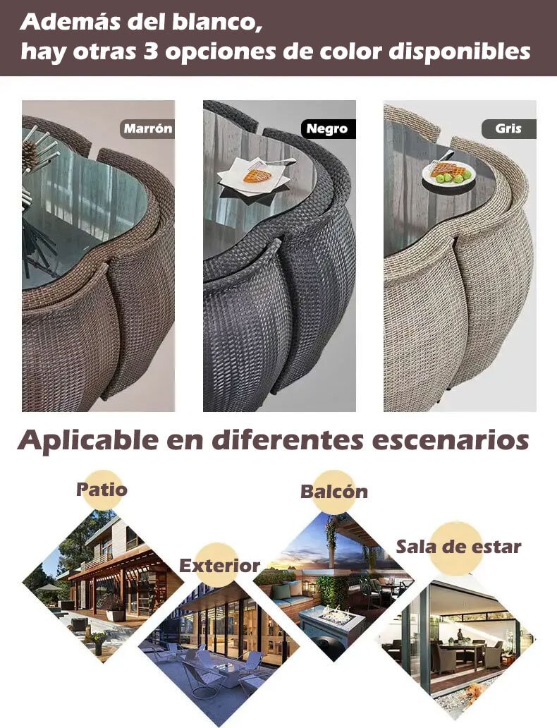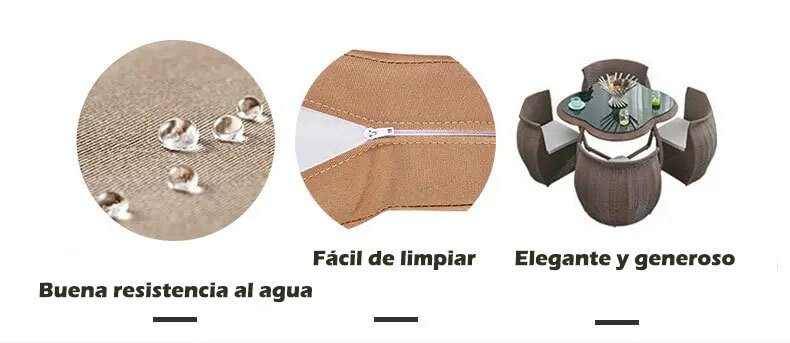 Nuestros productos prestan gran atención a los detalles, fabricados con materiales de alta calidad que son fáciles de limpiar y mantener. Su resistencia al agua los hace adecuados tanto para uso en interiores como en exteriores, sin verse afectados por las condiciones climáticas