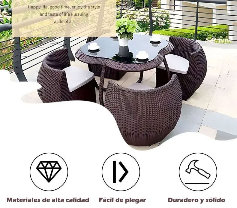 Te ofrecemos esta exclusiva combinación de 5 piezas con un diseño moderno, que incluye una hermosa mesa y cuatro elegantes sillas. Ya sea en el área de comedor de tu hogar, en un restaurante o en la terraza, se convertirá en una atracción encantadora
