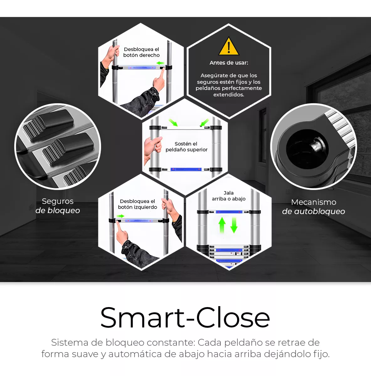 Escalera Telescópica Tipo Tijera Retráctil 12 Peldaños 3.8m