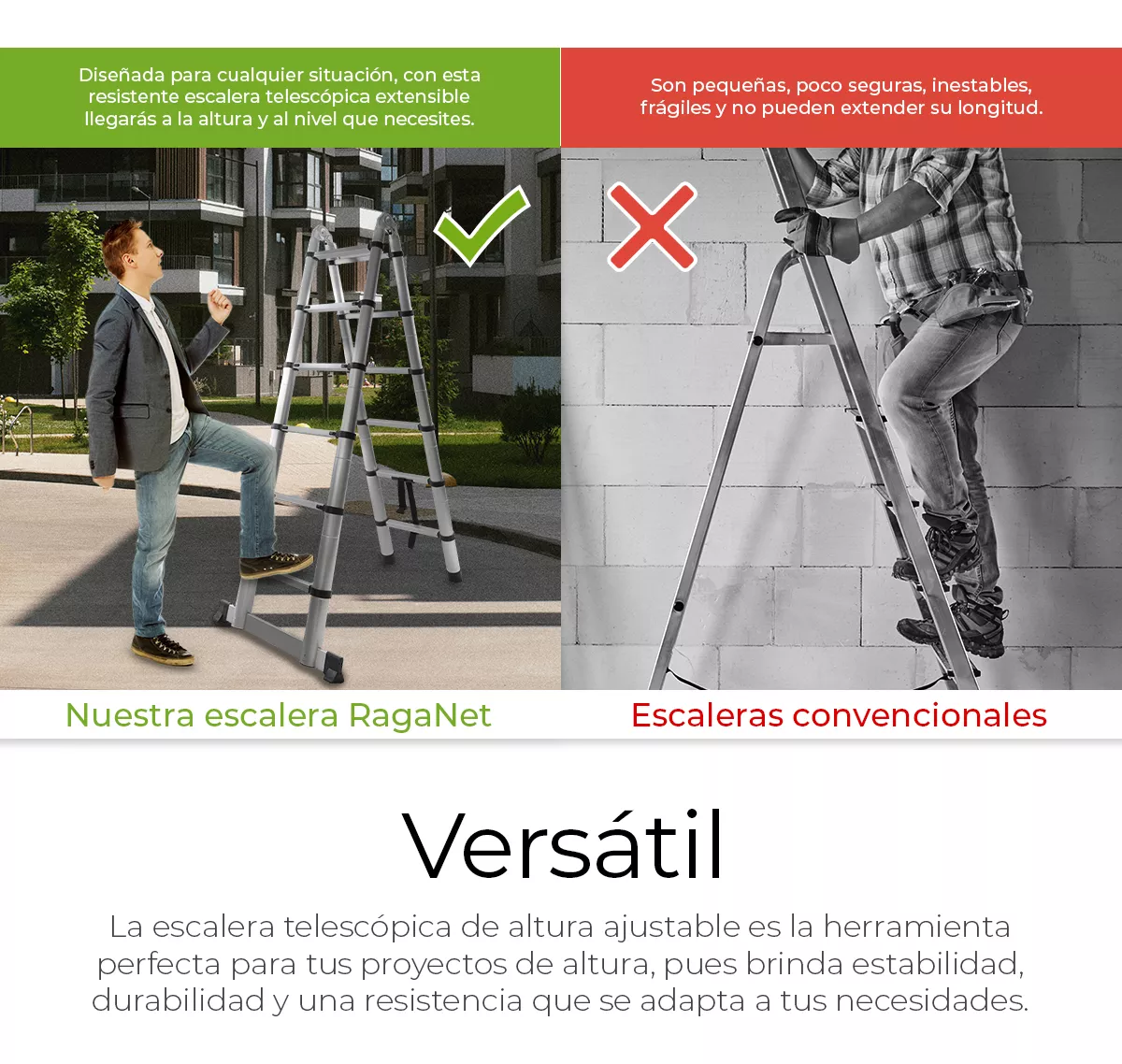 Ya sea para trabajos en casa, en el jardín o en el trabajo, la escalera Raganet Escalera 2 en 1 es la herramienta que necesitas. Su calidad y funcionalidad te permitirán realizar tus labores de forma eficiente y segura. No esperes más y adquiere la escalera que facilitará tus tareas en altura.
