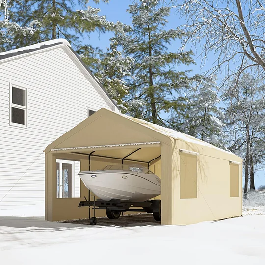 Cochera más grande: 12'x20' El tamaño extra grande proporciona un amplio espacio para sus vehículos, camiones y embarcaciones. Paredes laterales y puertas extraíbles para satisfacer sus diversas necesidades. También es adecuado para eventos al aire libre como fiestas, bodas y ferias comerciales.