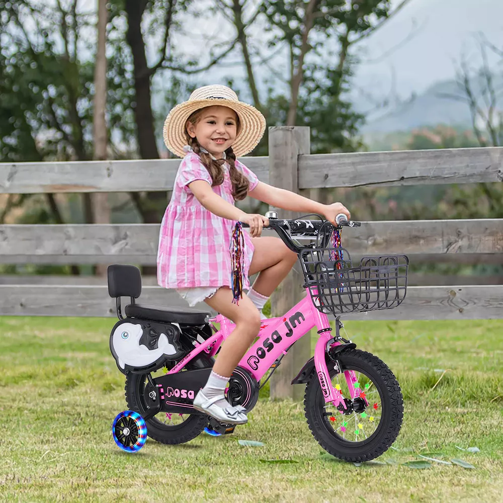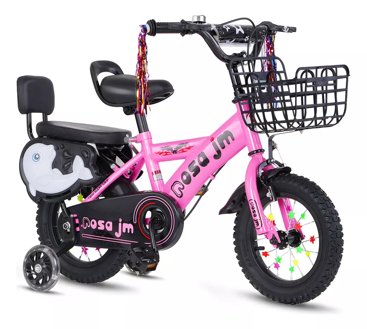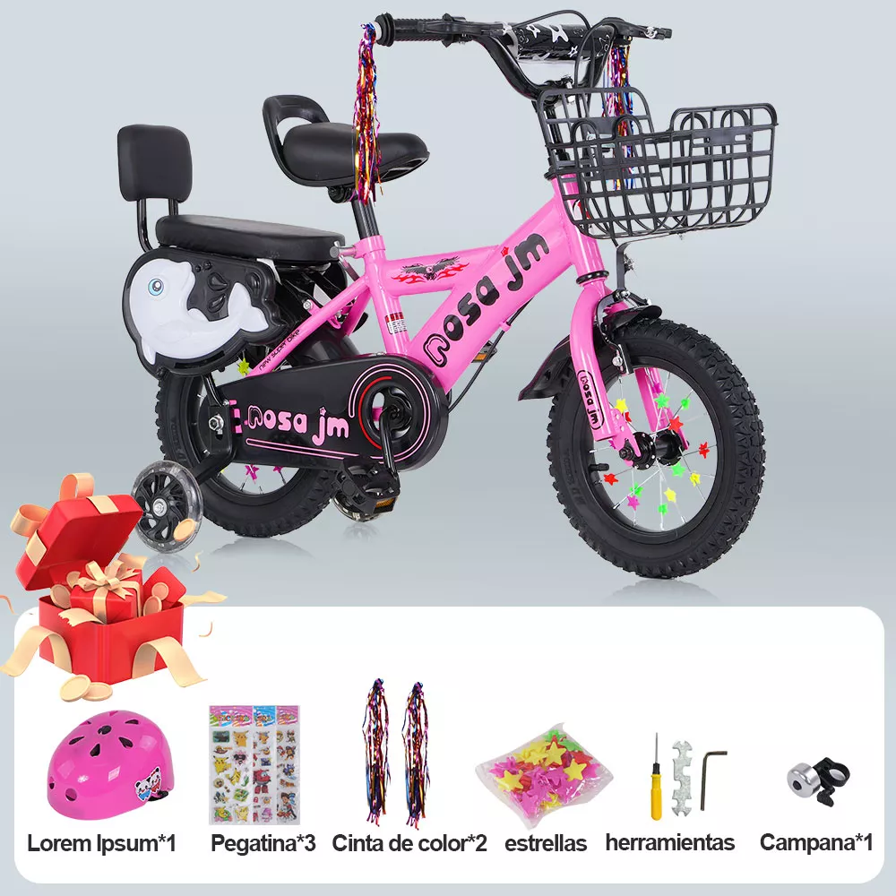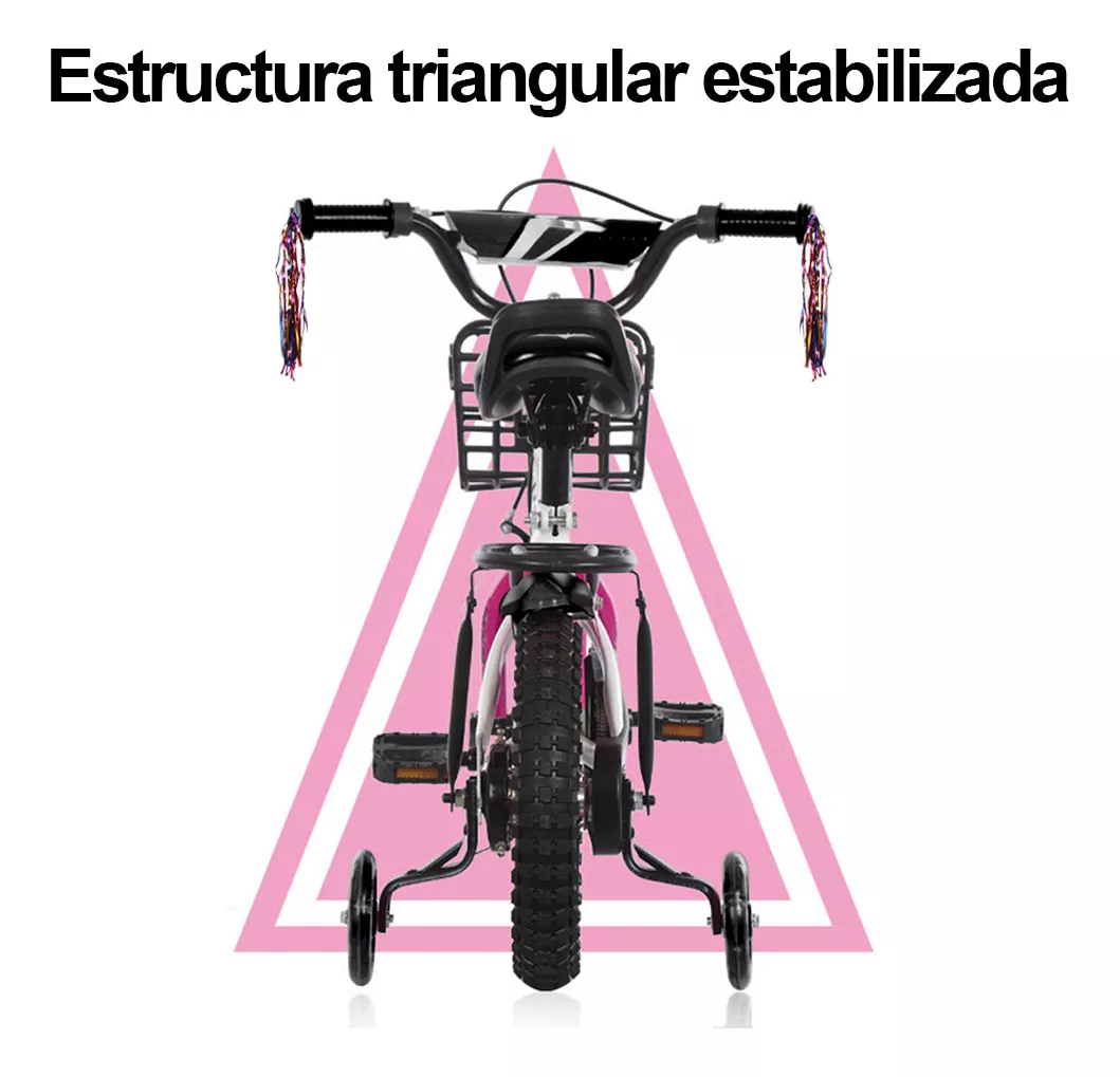 Canasta: Incluye una canasta frontal ideal para llevar pequeños juguetes, snacks o una botella de agua, facilitando que los niños lleven sus cosas mientras montan la bicicleta.