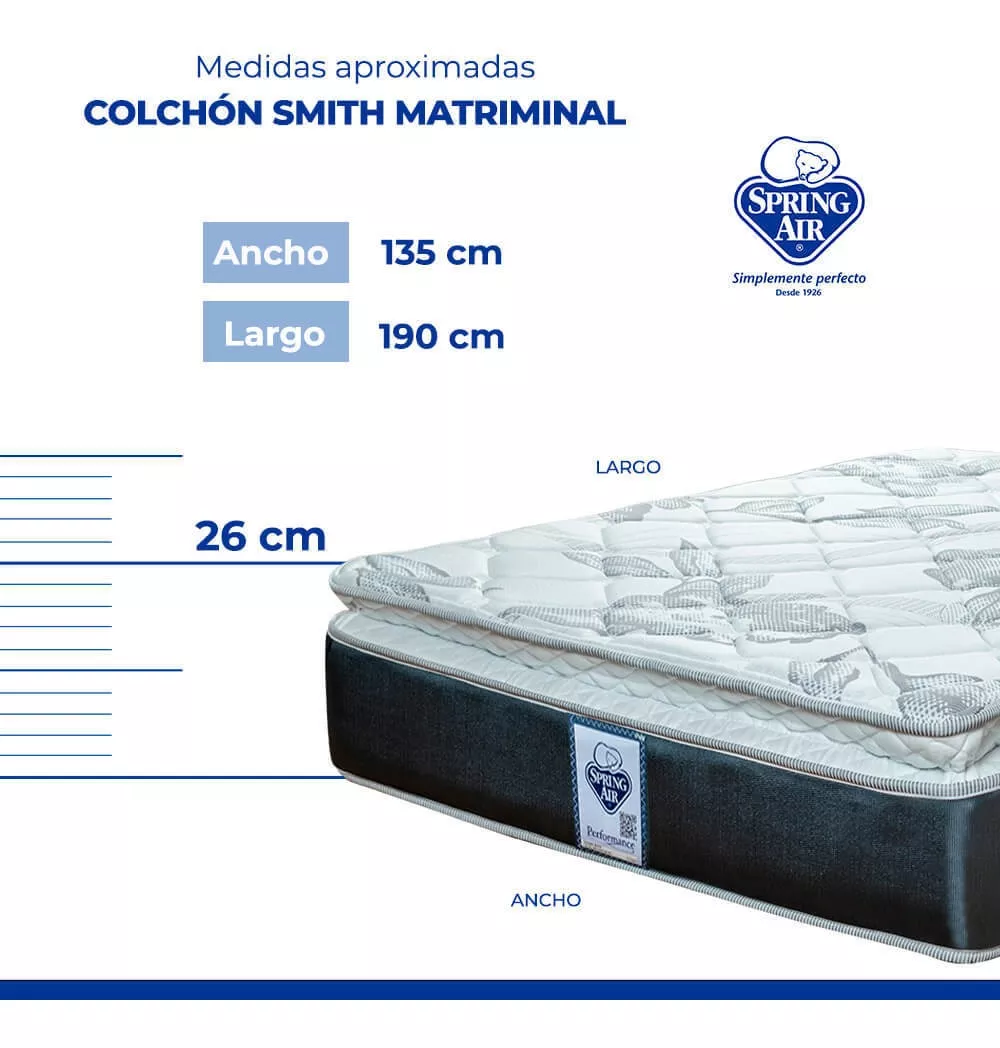 Spring Air Colchon Matrimonial Smith Tecnología Performance Cama con Alto Soporte y Ortopédico de Confort Medio Es Hipoalergénico y Anti ácaros