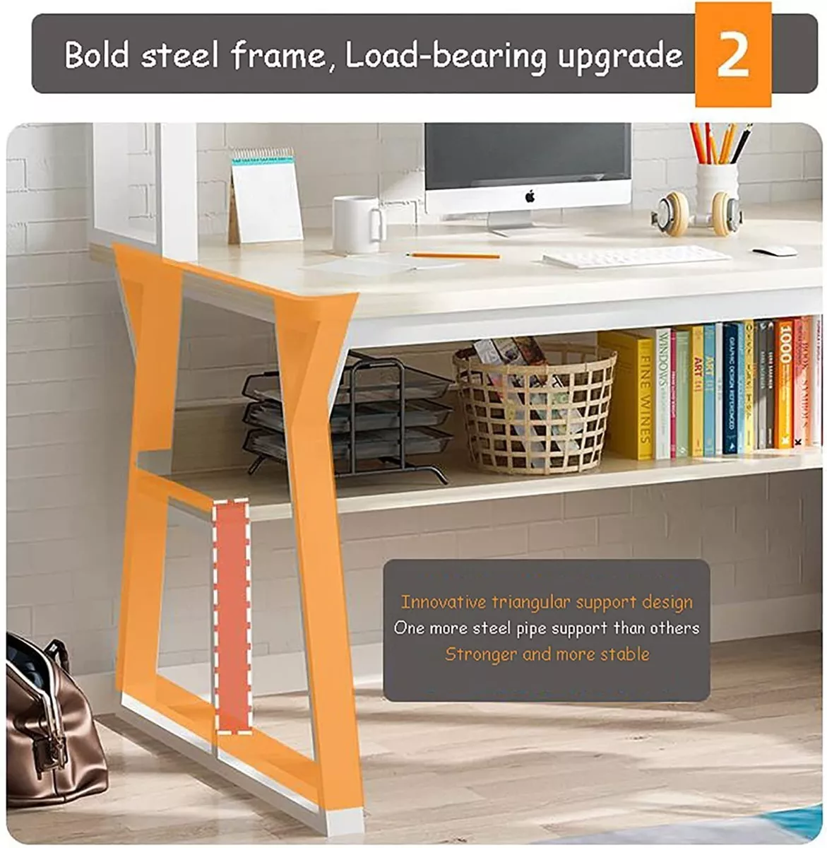 2. Amplio escritorio en forma de arco: Proporciona espacio suficiente para portátiles y otros artículos, aumentando enormemente la comodidad de uso. El espacio nunca será un problema del que tenga que preocuparse etc.