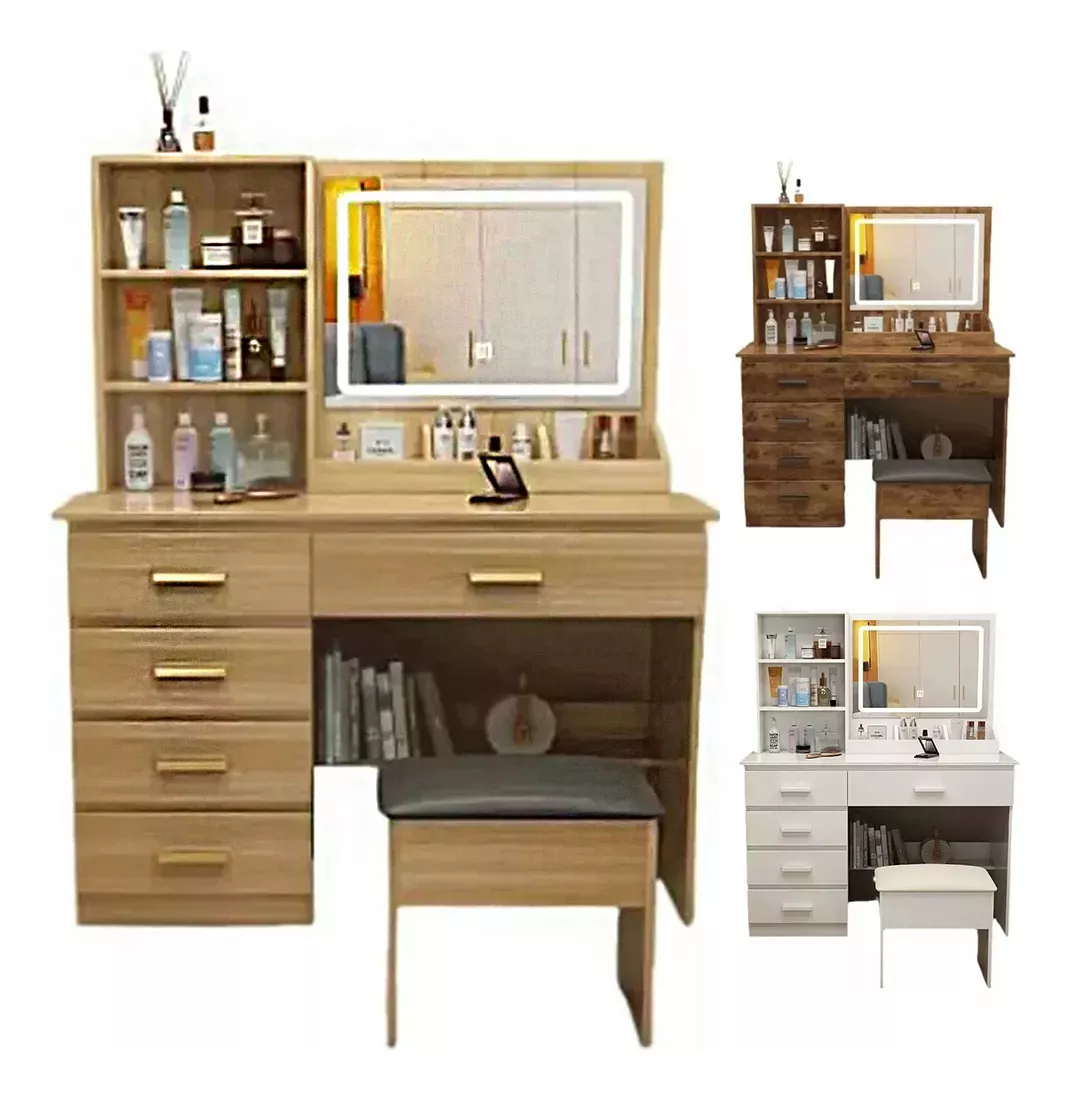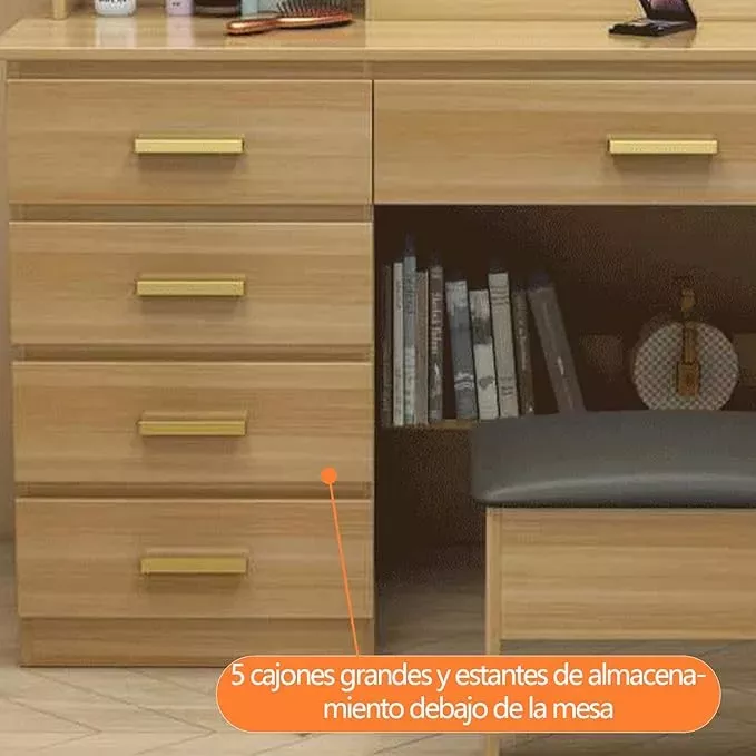Tocador Compacto Moderno Con Espejo 5 Cajones 4 Repisas Luz LED |